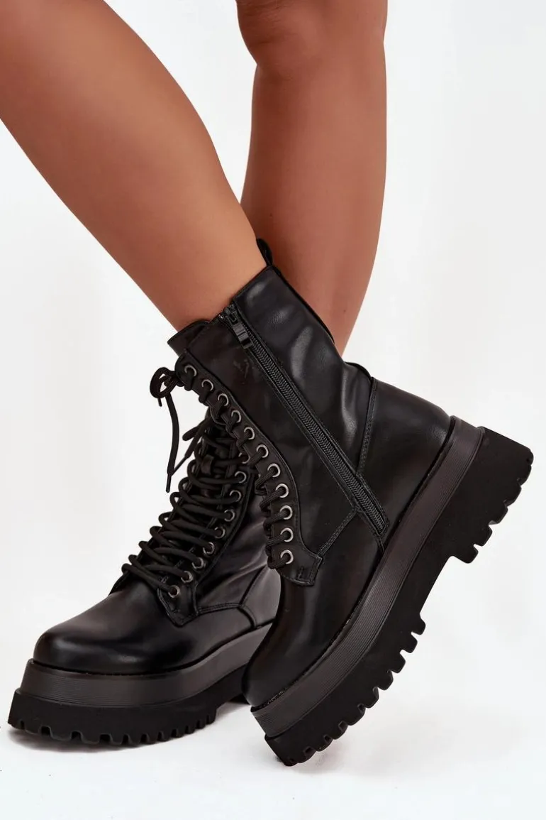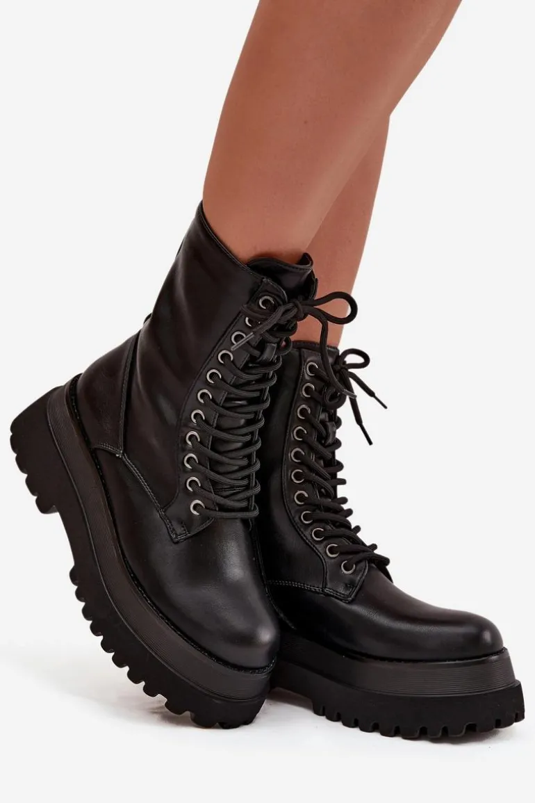 Botki workery damskie wykonane z eko skóry to idealne połączenie stylu i wygody. Model osadzony na masywnej platformie, która nadaje im wyrazistego charakteru i nowoczesnego wyglądu. Sznurowane i zapinane na zamek, doskonale dopasowują się do stopy oraz zapewniają komfort zakładania. Wnętrze butów zostało ocieplone pianką pokrytą tkaniną, co gwarantuje ciepło i wygodę w chłodniejsze dni. To modny i praktyczny model, który świetnie sprawdzi się w codziennych stylizacjach. Przy wyborze rozmiaru prosimy sugerować się tabelą rozmiarów.