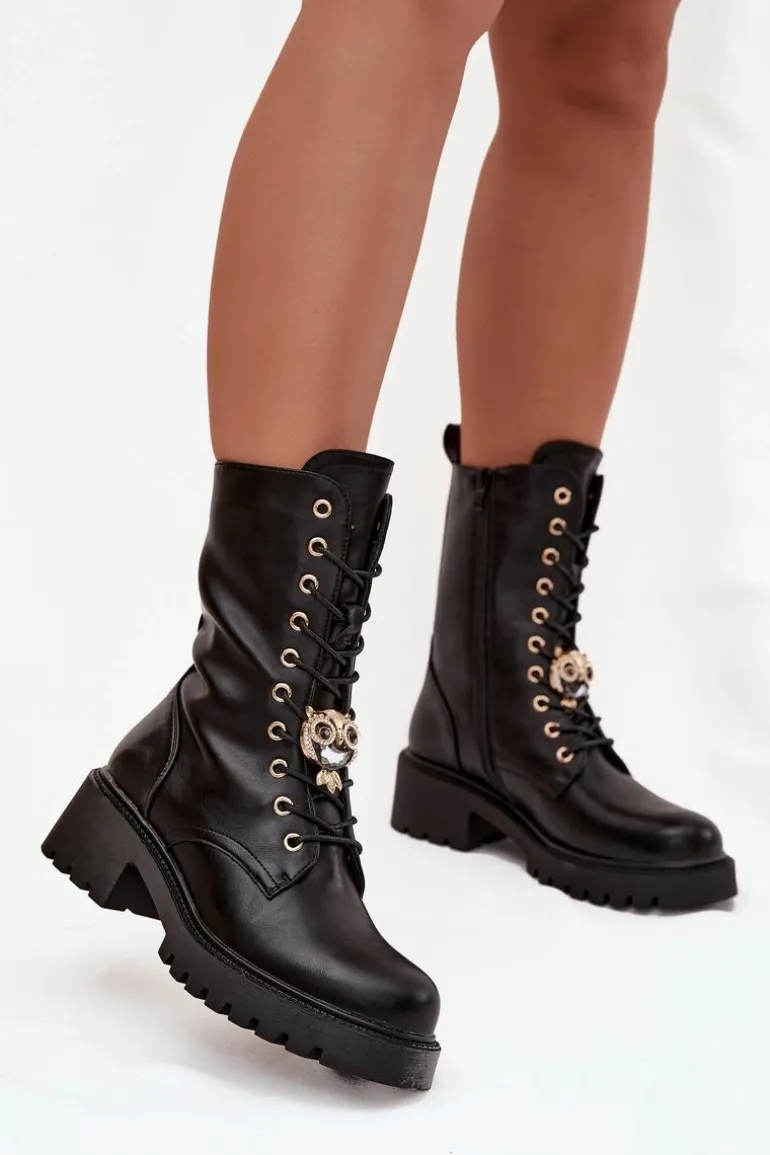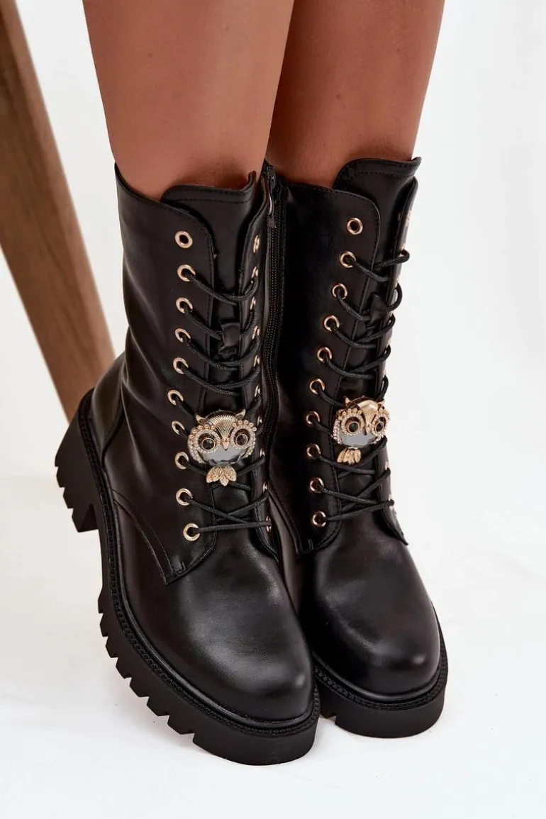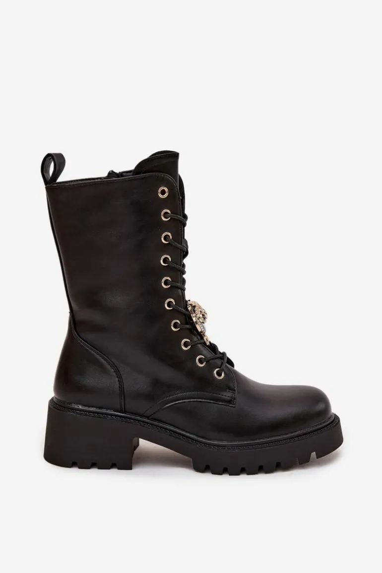 Botki workery damskie wykonane z eko skóry to połączenie stylu i funkcjonalności. Model osadzony na stabilnym obcasie typu klocek zapewnia komfort oraz pewność kroku. Buty są zapinane na zamek i sznurowane, co ułatwia zakładanie oraz dopasowanie do stopy. Ozdoba umieszczona przy sznurowaniu dodaje im modnego, charakterystycznego akcentu. To uniwersalne botki, które doskonale uzupełnią zarówno codzienne, jak i bardziej stylowe, miejskie stylizacje. Przy wyborze rozmiaru prosimy sugerować się tabelą rozmiarów.