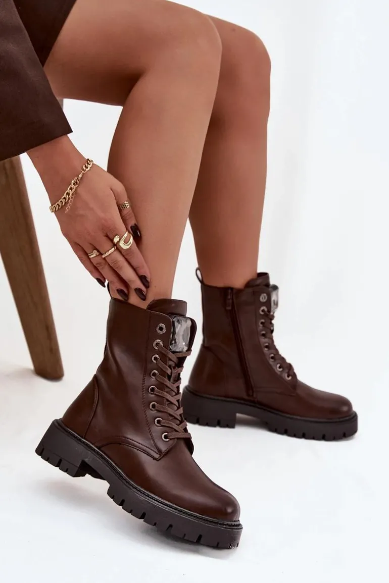 Botki workery damskie wykonane z eko skóry to praktyczna i stylowa propozycja na chłodniejsze dni. Model łączy w sobie funkcjonalność i modny wygląd – zapinany na zamek oraz sznurowany, co pozwala na idealne dopasowanie do stopy i wygodne zakładanie. Zaokrąglone noski nadają butom klasycznego charakteru, a ocieplane wnętrze z pianki pokrytej tkaniną zapewnia ciepło i komfort podczas noszenia. To uniwersalny model, który doskonale sprawdzi się w codziennych stylizacjach. Przy wyborze rozmiaru prosimy sugerować się tabelą rozmiarów.