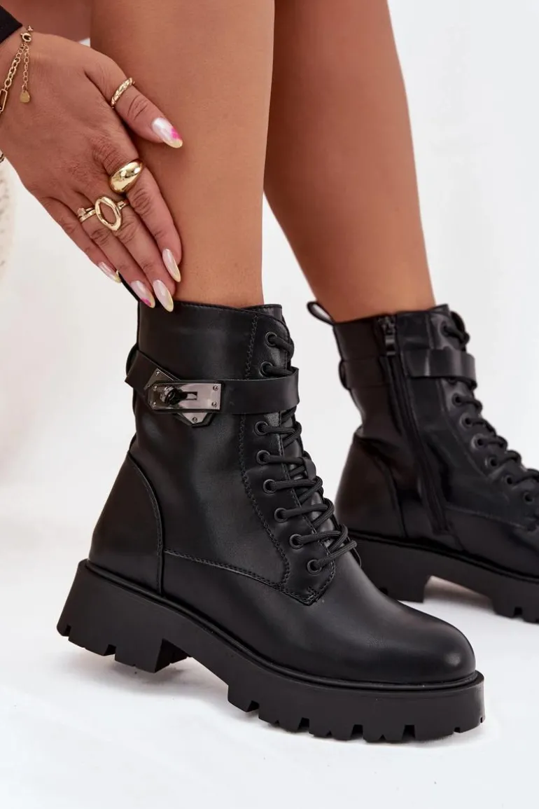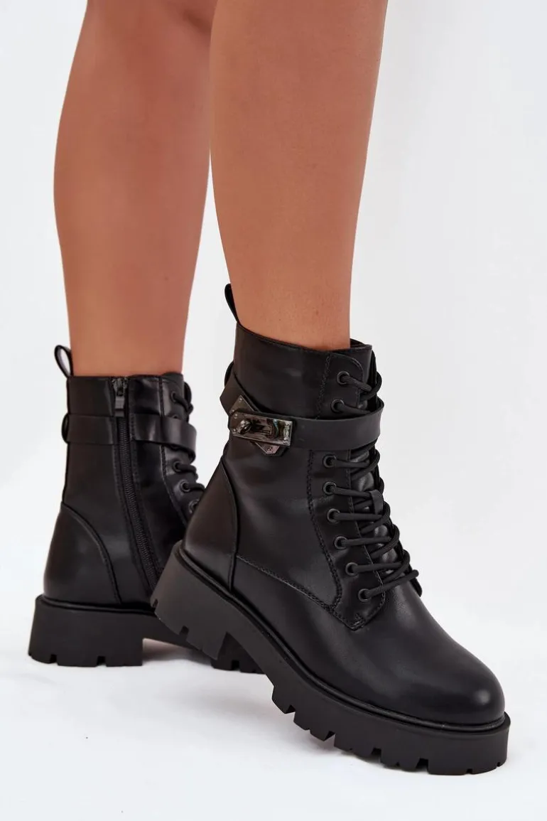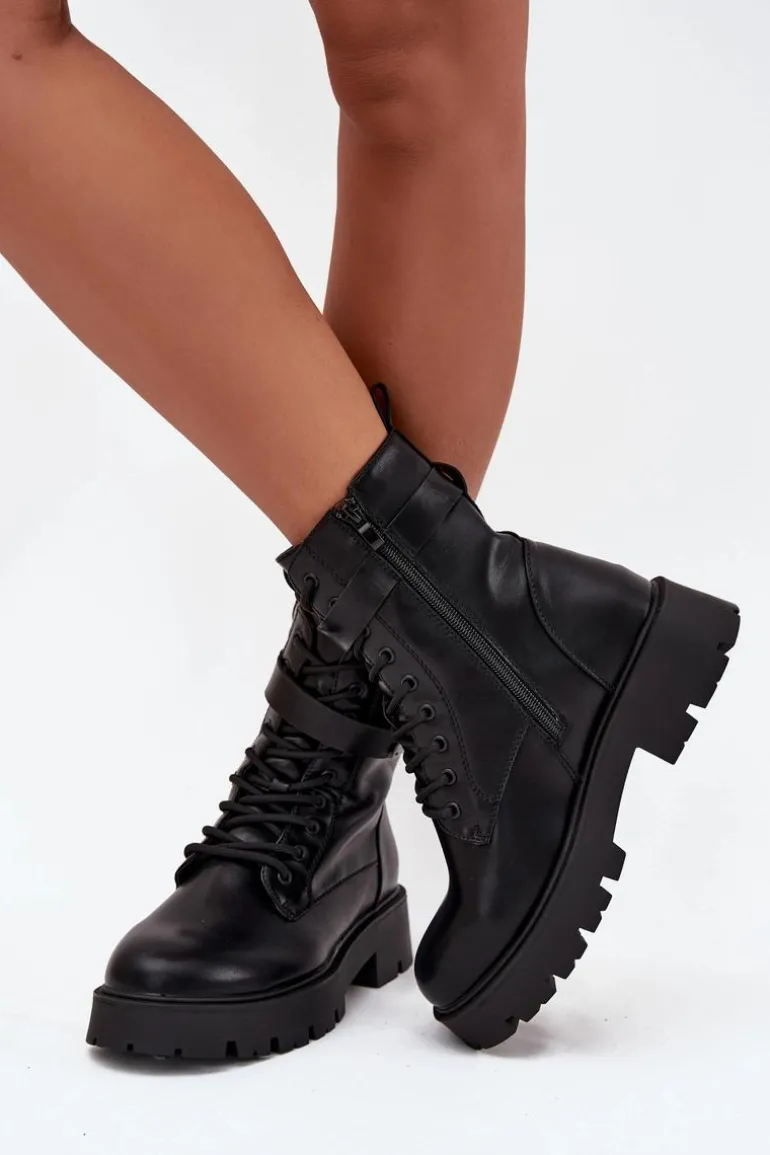 Botki workery damskie z eko zamszu to stylowa i funkcjonalna propozycja na zimowe dni. Ocieplane futerkiem, zapewniają ciepło i komfort nawet w mroźne dni. Sznurowane i zapinane na zamek, umożliwiają łatwe dopasowanie do stopy. Na cholewce znajduje się ozdobny pasek, który można odpiąć, co pozwala na zmianę stylu. Te botki świetnie sprawdzą się w codziennych zimowo-jesiennych stylizacjach. Przy wyborze rozmiaru prosimy sugerować się tabelą rozmiarów.