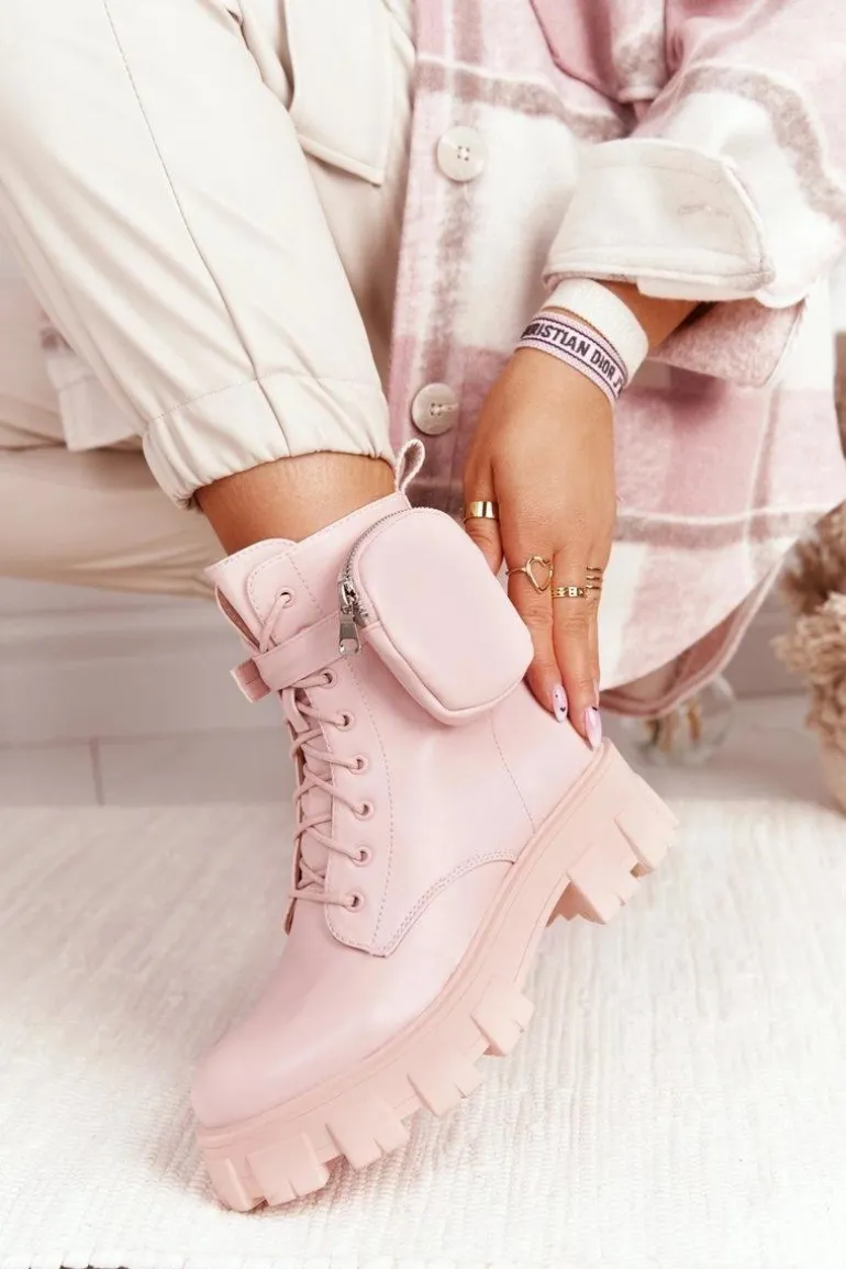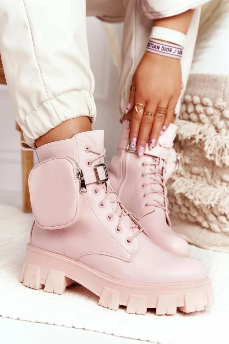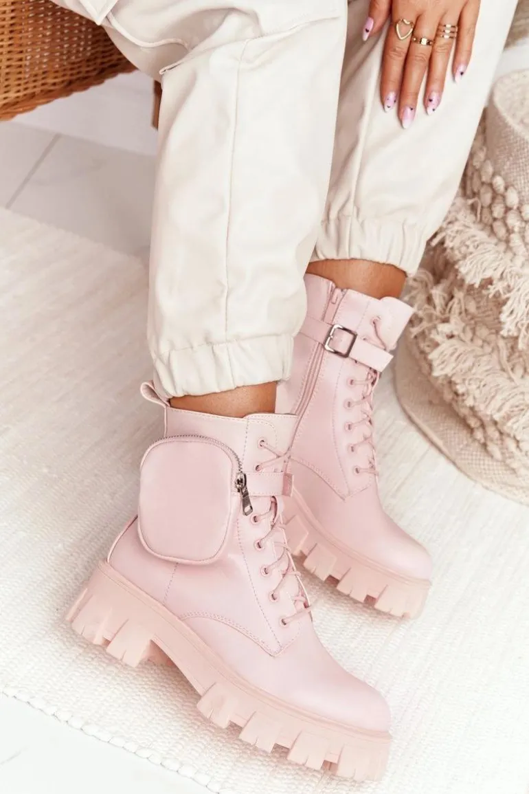 Botki Workery Na Platformie z Nerką Różowe Saturday