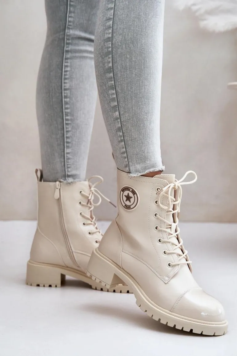 Damskie botki workery wykonane z ekologicznej skóry, ocieplane kocem obuwniczym, idealnie sprawdzą się w chłodniejsze dni. Model zapinany na zamek oraz sznurowany, co zapewnia doskonałe dopasowanie do stopy i wygodę noszenia. Klasyczny design w połączeniu z funkcjonalnością czyni je stylowym wyborem na co dzień. Przy wyborze rozmiaru prosimy sugerować się tabelą rozmiarów.