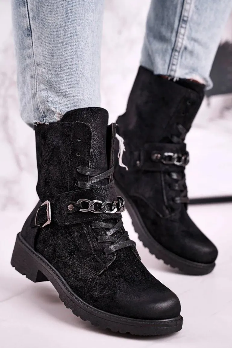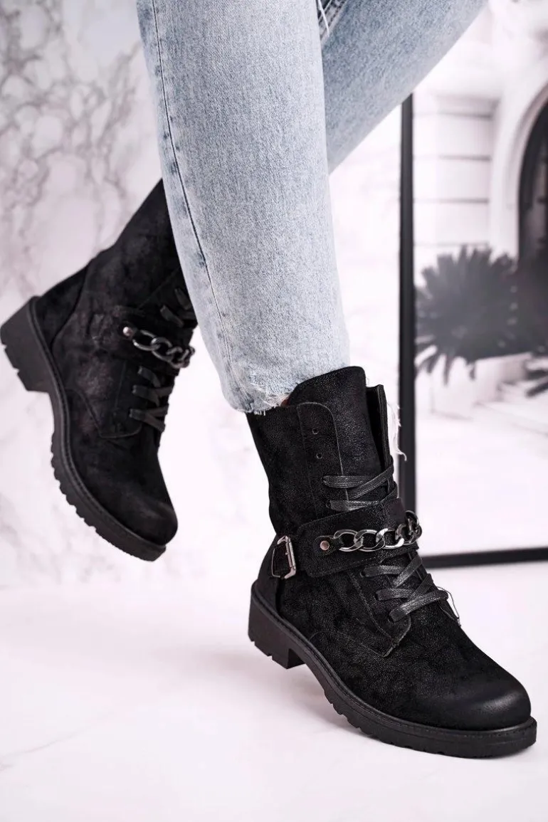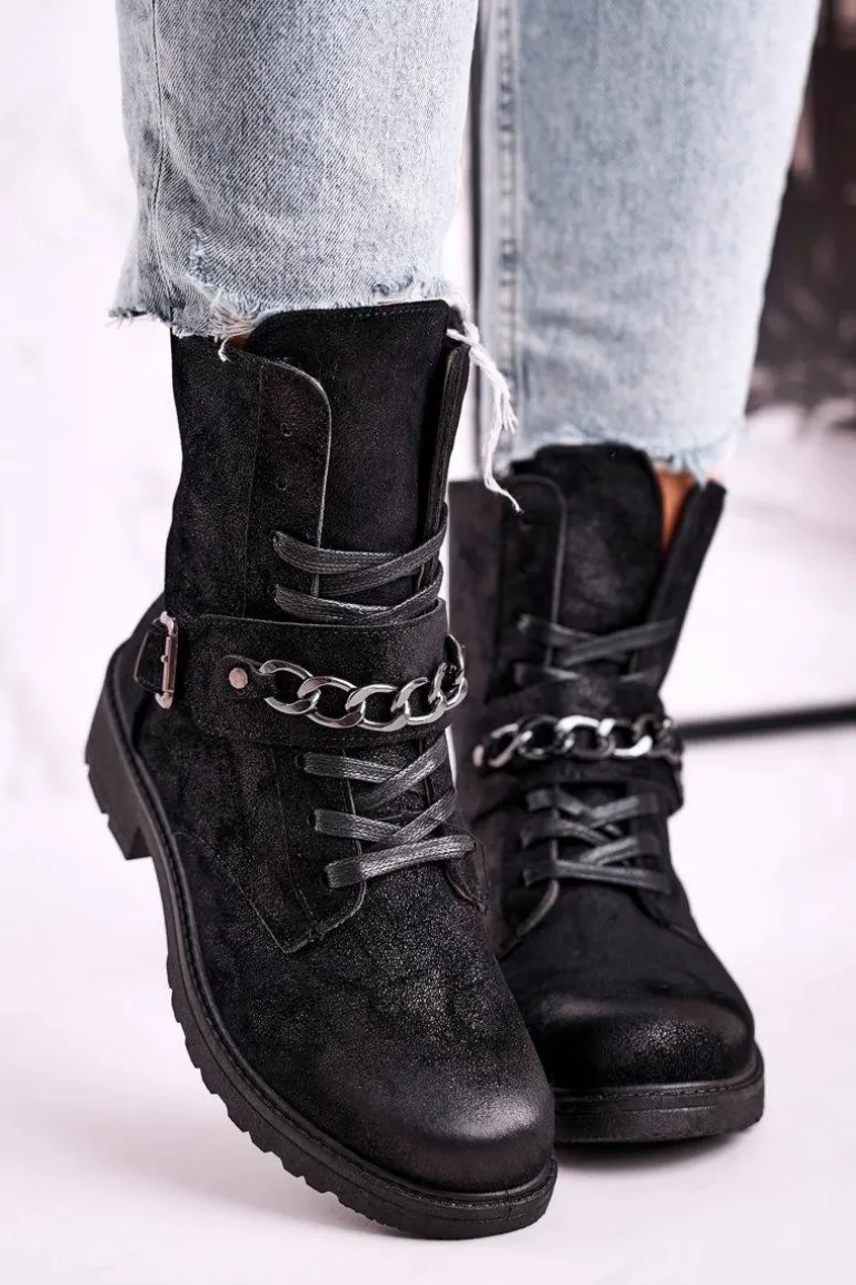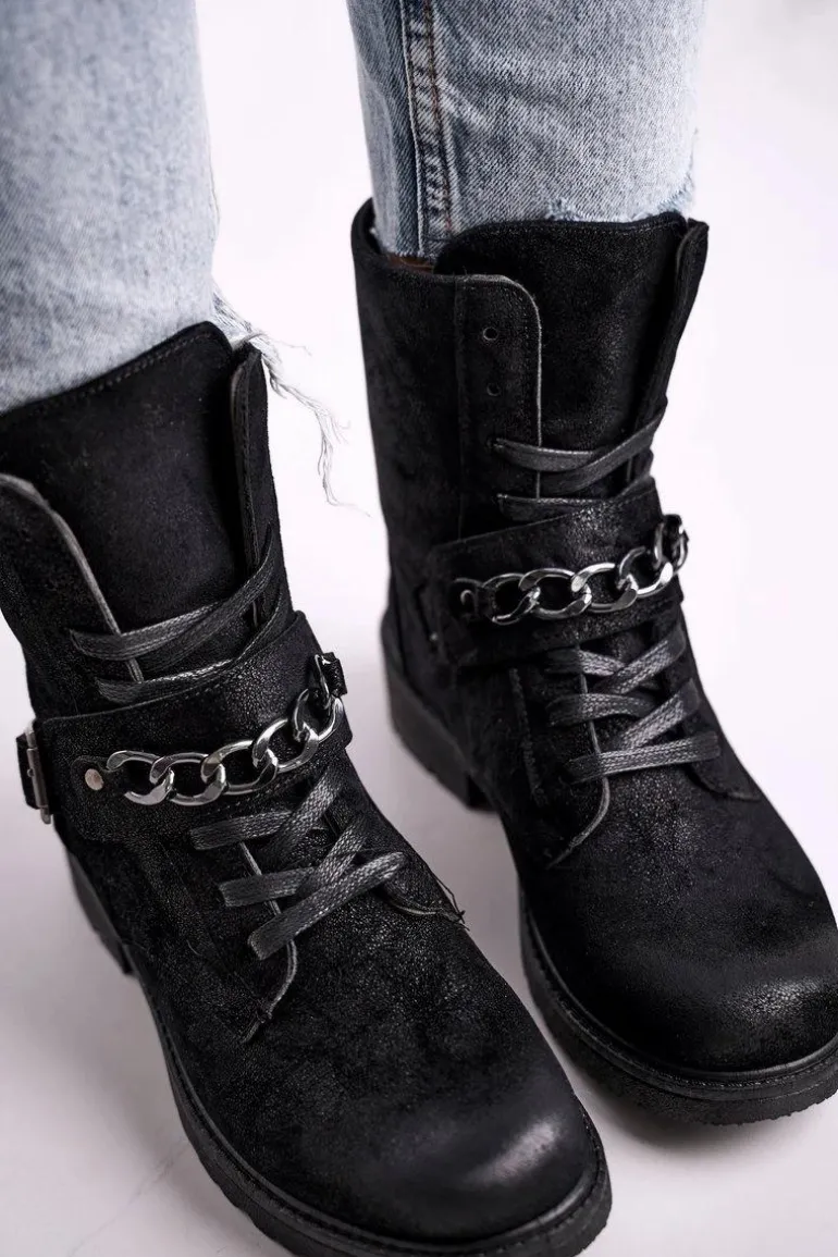 Botki Workery Z Łańcuchem Zamszowe Czarne Augusta