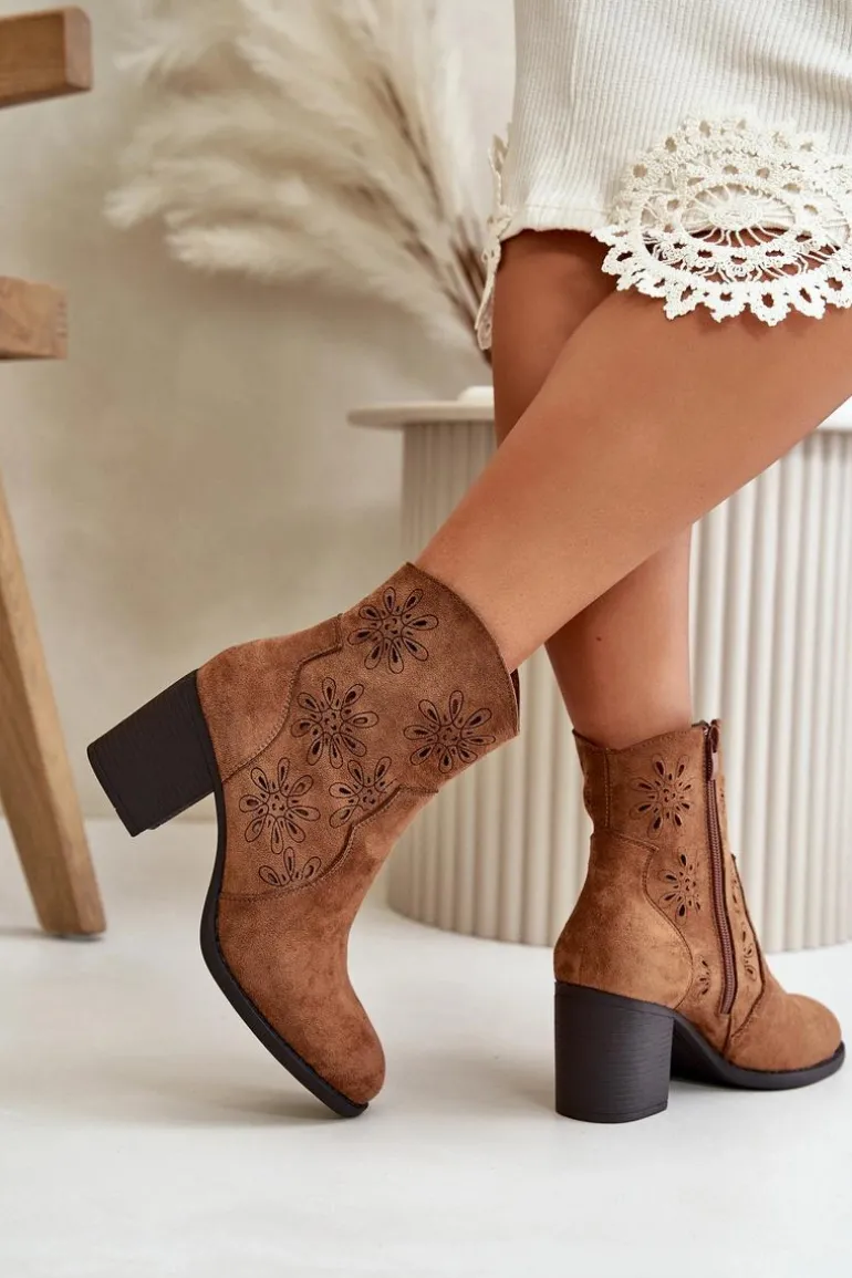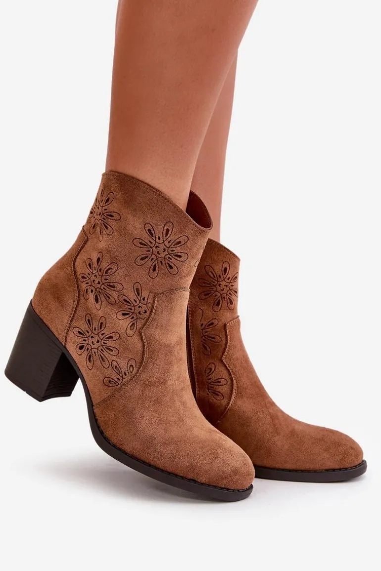 Botki damskie od marki Jezzi to doskonałe połączenie stylu i wygody, idealne na chłodniejsze dni. Model ten wyróżnia się eleganckim słupkowym obcasem, który zapewnia stabilność oraz subtelnie wydłuża sylwetkę. Zapinane na praktyczny zamek, botki są łatwe do zakładania i zdejmowania, co zwiększa komfort ich użytkowania. Ażurowa cholewka nadaje im unikalnego charakteru. Wkładka wykonana ze skóry naturalnej. Te stylowe botki doskonale komponują się zarówno z casualowymi, jak i bardziej eleganckimi stylizacjami. Przy wyborze rozmiaru prosimy sugerować się tabelą rozmiarów.