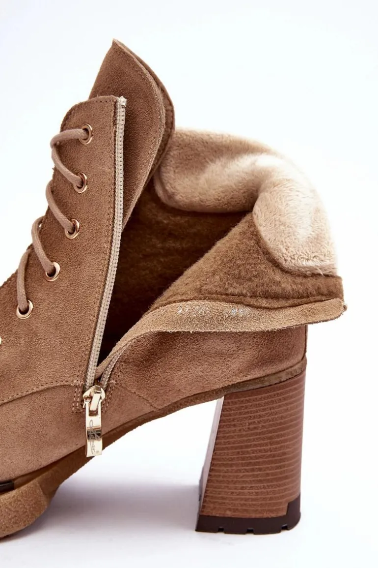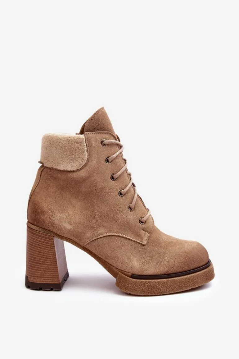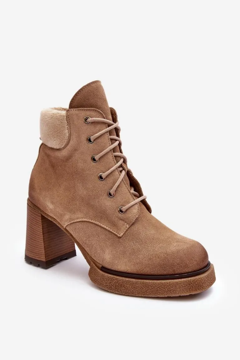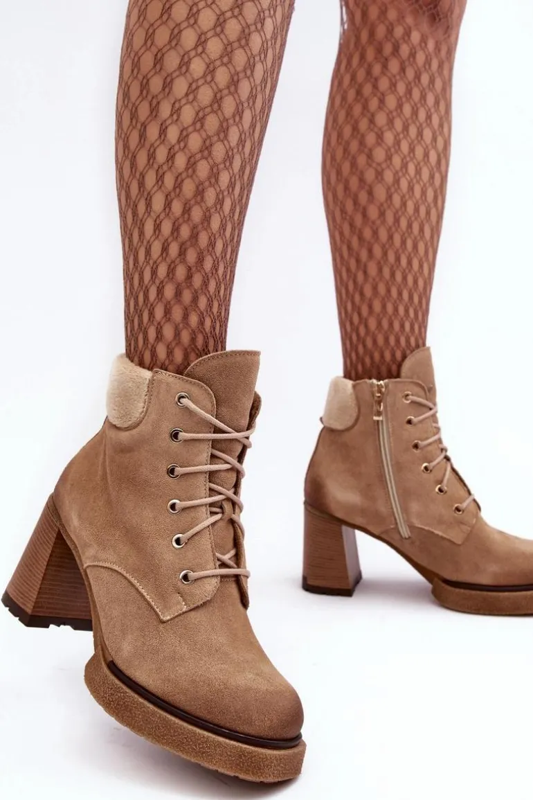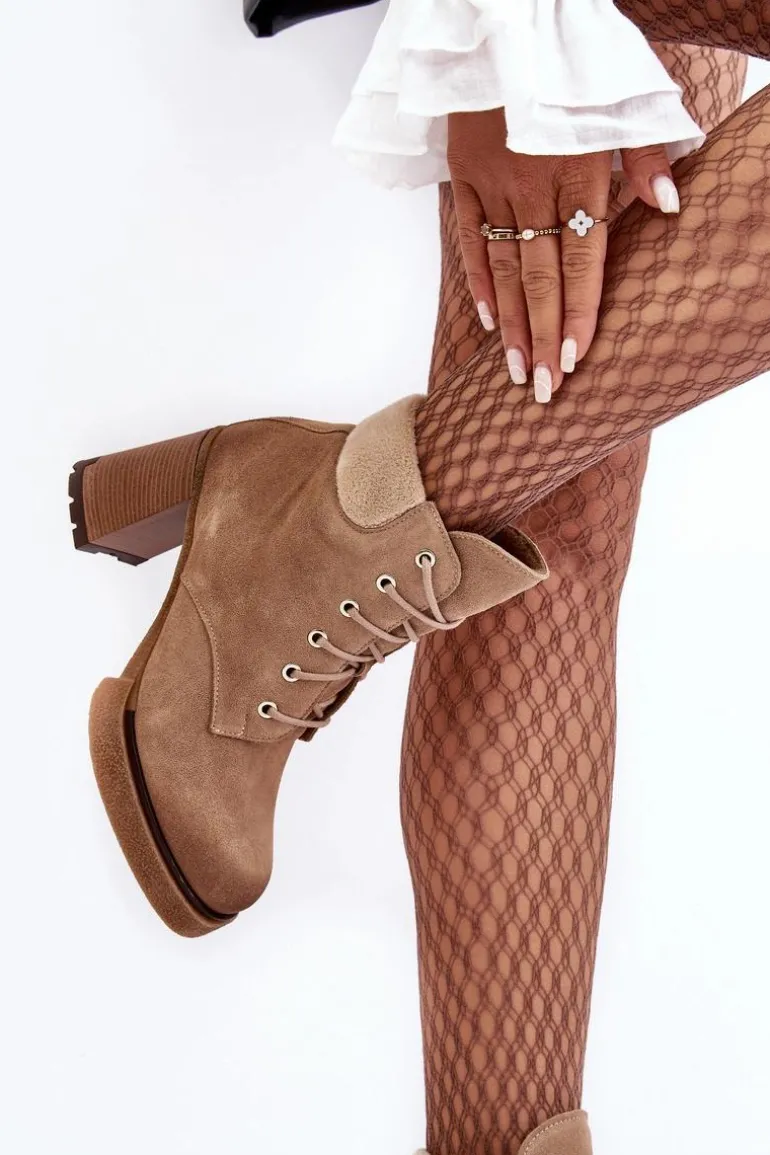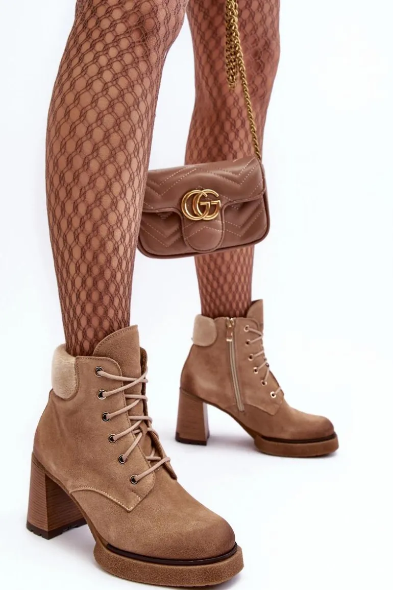 Botki Zamszowe Sznurowane Na Słupku Beżowe Lemar Flomes