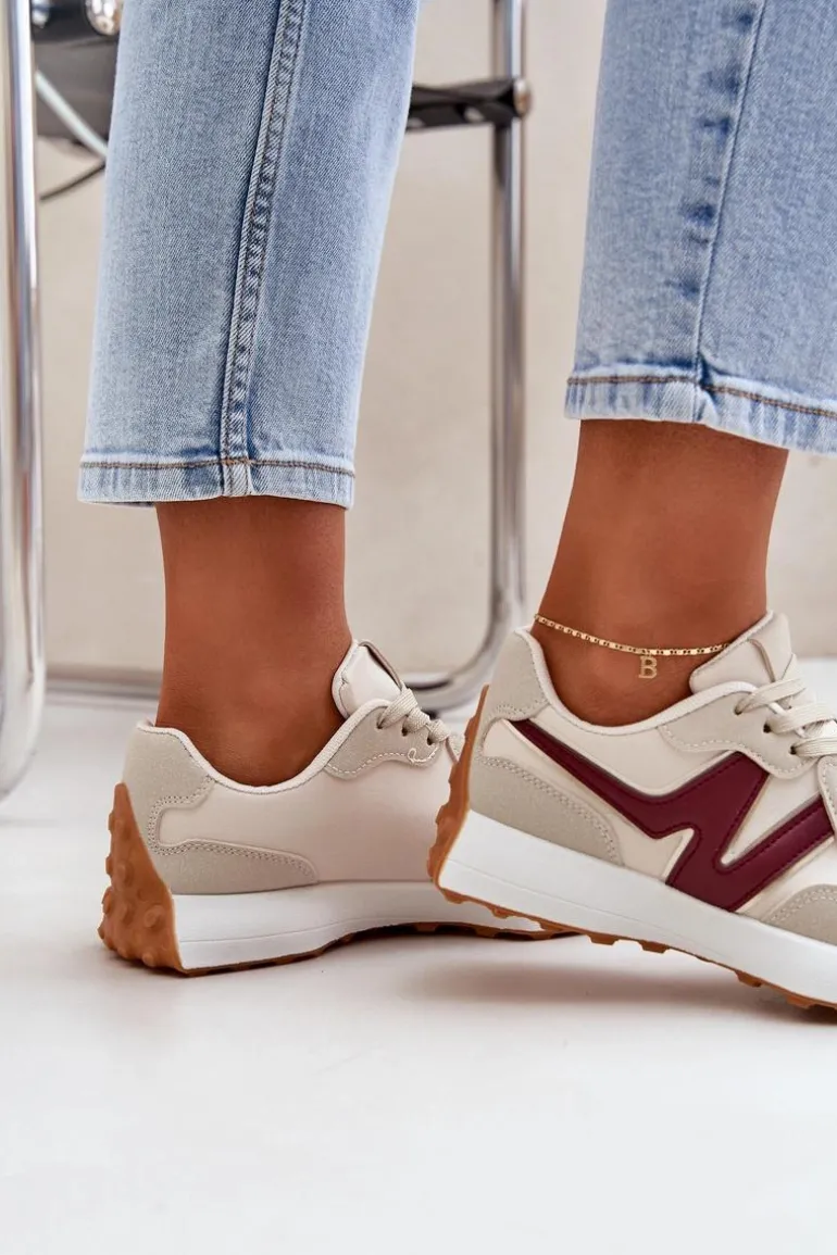 Damskie buty sportowe wykonane z połączenia eko skóry i tkaniny. Osadzone na podeszwie z wypustkami, gwarantują dobrą przyczepność oraz stabilność podczas aktywności. Dodatkowym atutem jest wyjmowana wkładka z pianki, zapewniająca komfort i łatwość utrzymania w czystości. Idealny wybór dla osób szukających funkcjonalnego, a zarazem stylowego obuwia na co dzień. Przy wyborze rozmiaru prosimy kierować tabelą rozmiarów.