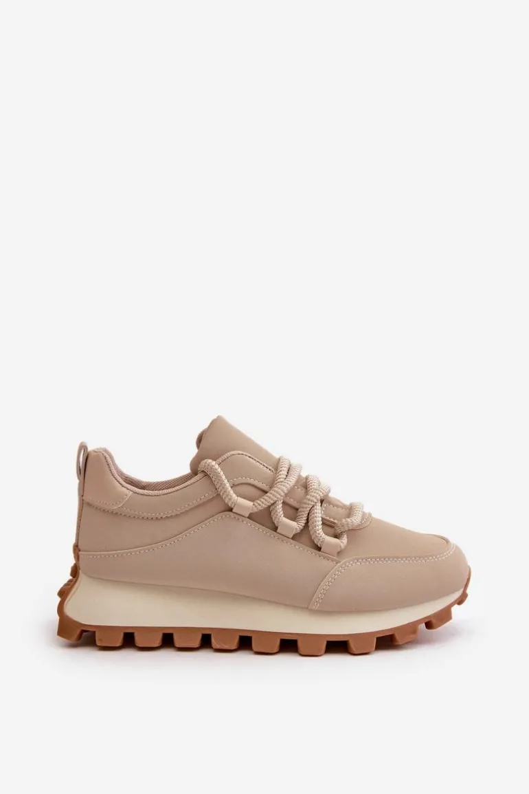 Sneakersy damskie zostały wykonane z ekologicznej skóry. Osadzone na platformie z wypustkami. Piankowa wkładka zapewni wygodę na każdym kroku. Grube wiązanie umożliwi odpowiednie dopasowanie obuwia do tęgości nogi. Model ten idealnie dopełni wiele stylizacji dodając im sportowego stylu! Przy wyborze rozmiaru prosimy kierować tabelą rozmiarów.