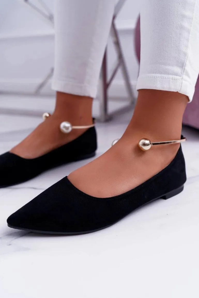 Czarne Balerinki Z Bransoletką W Szpic Mami