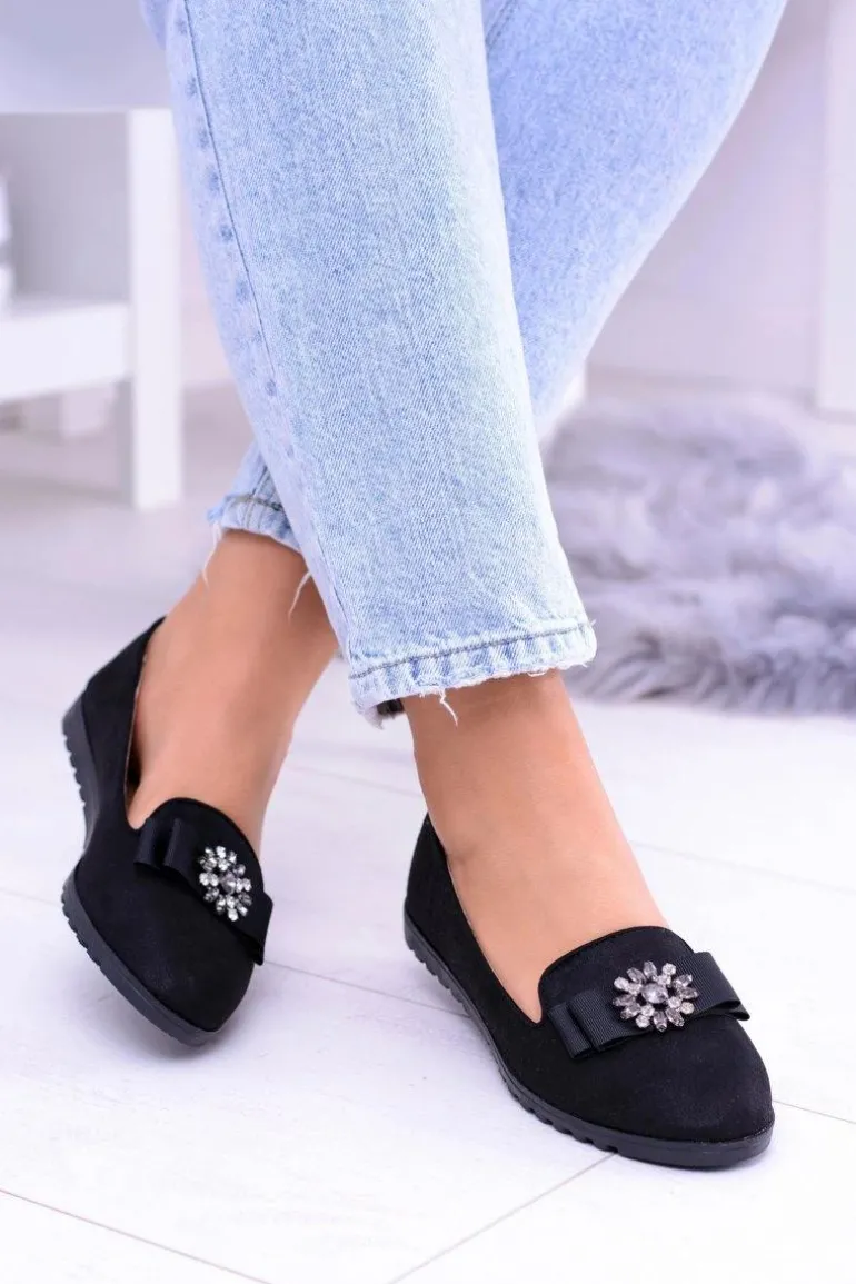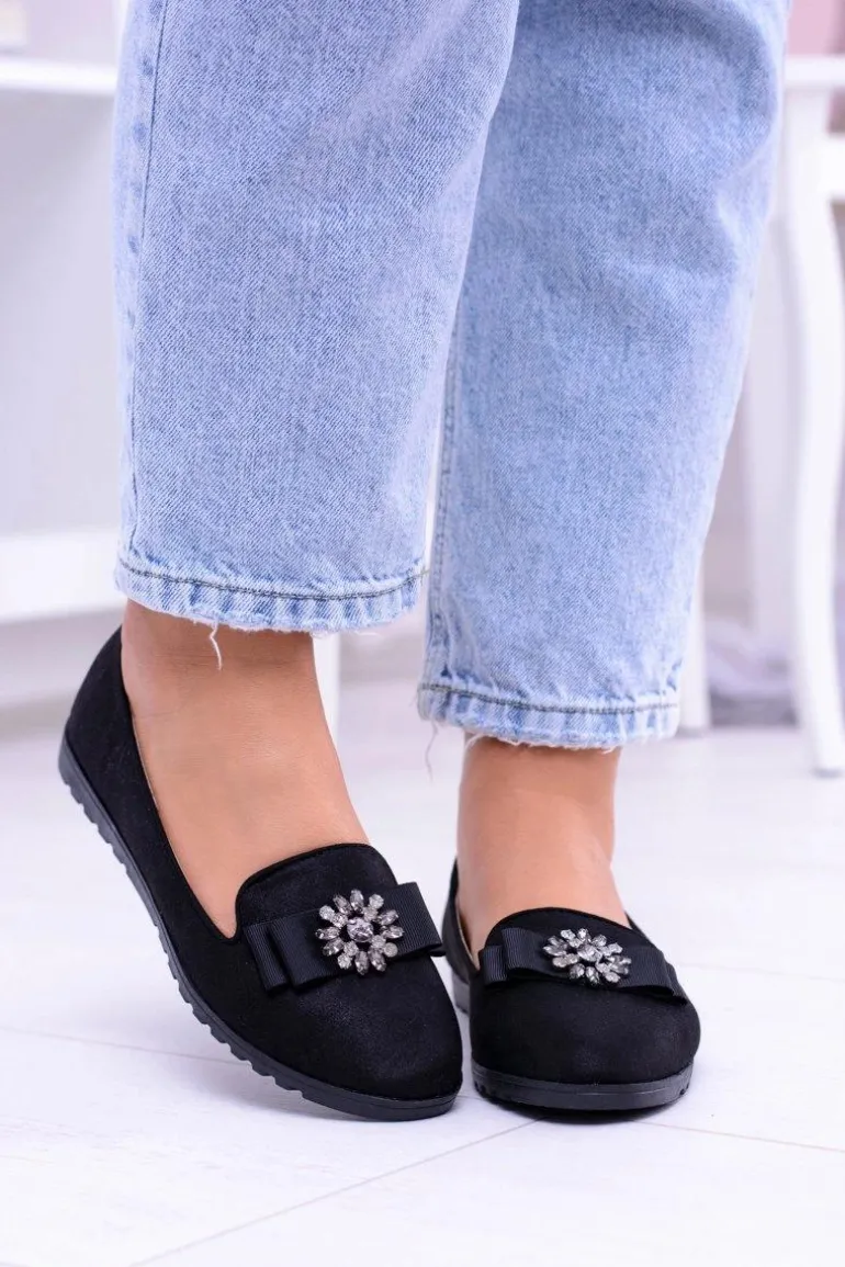 Czarne Damskie Baleriny Lordsy Cyrkonie Rumi