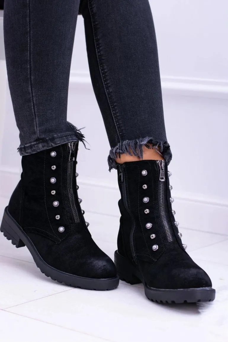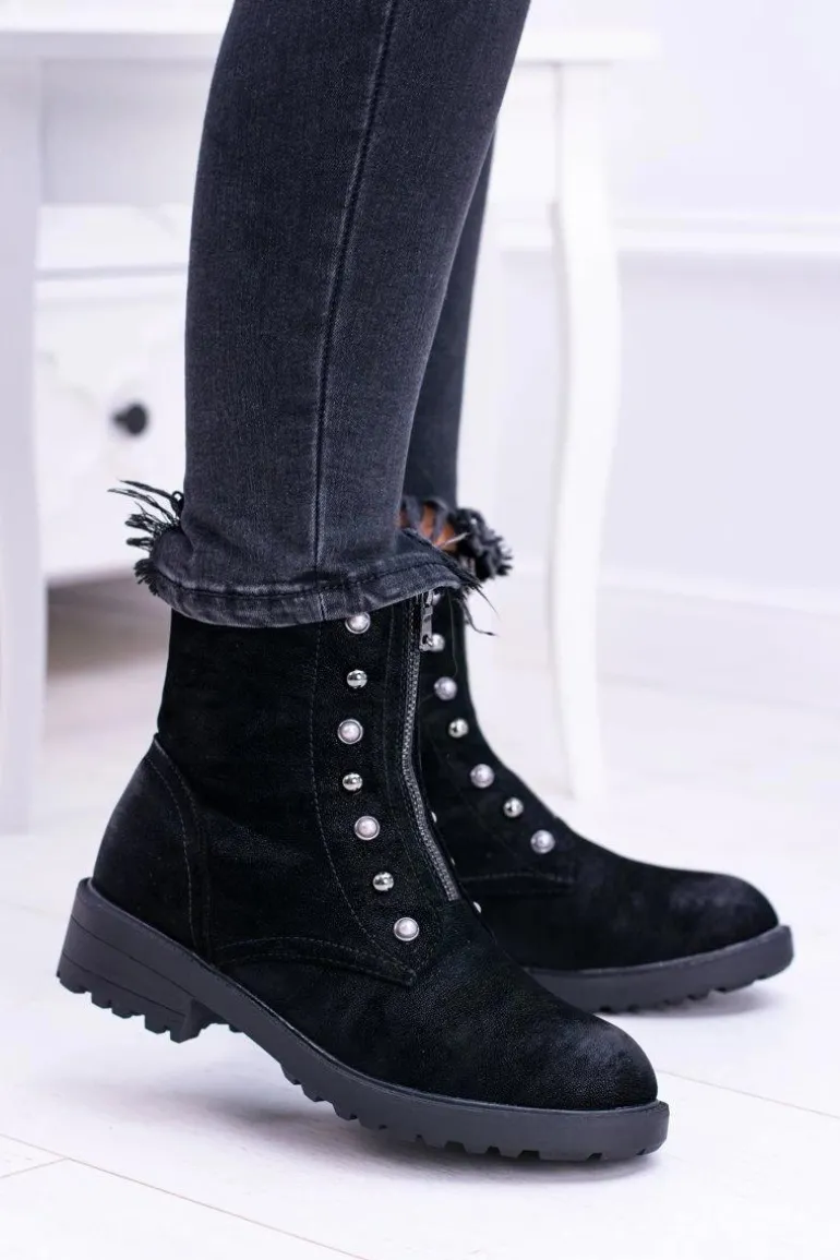 Czarne Damskie Botki Ocieplane Trapery Dowito