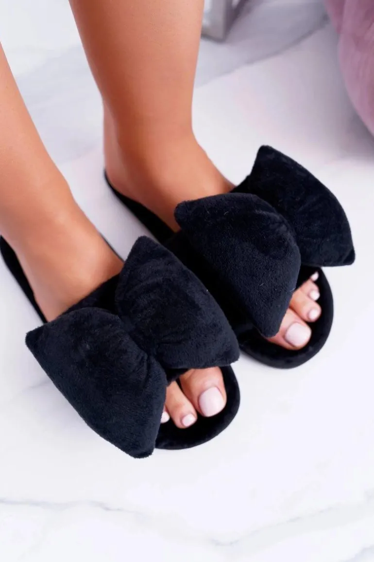 Czarne Damskie Klapki Lu Boo Duże Kokardy Floppy