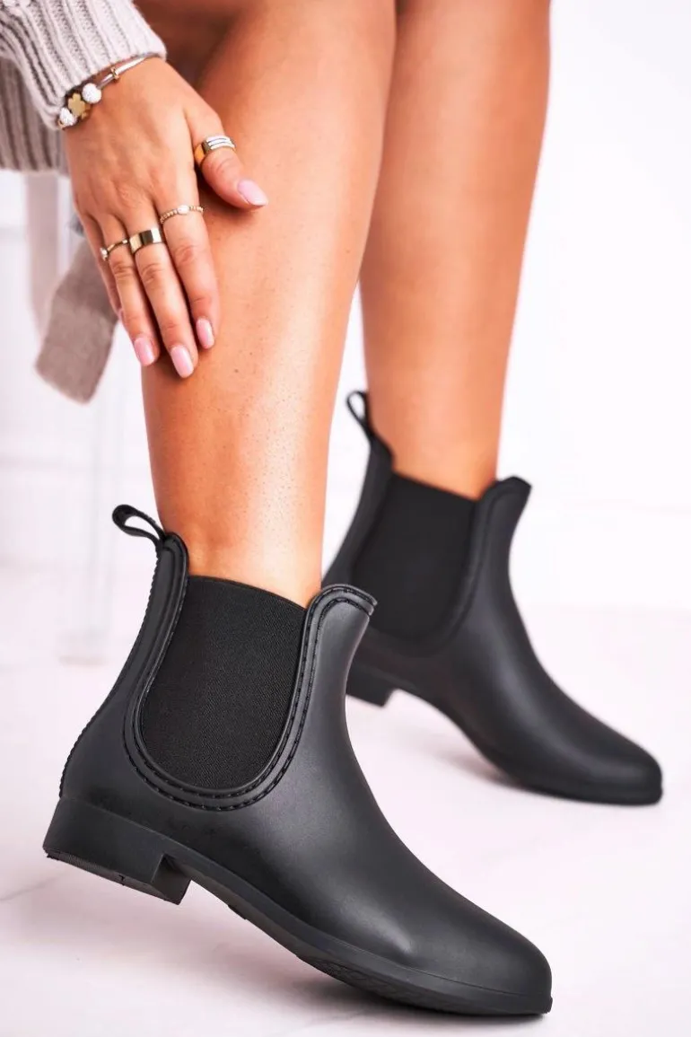 Czarne Damskie Matowe Kalosze Sztyblety Answear