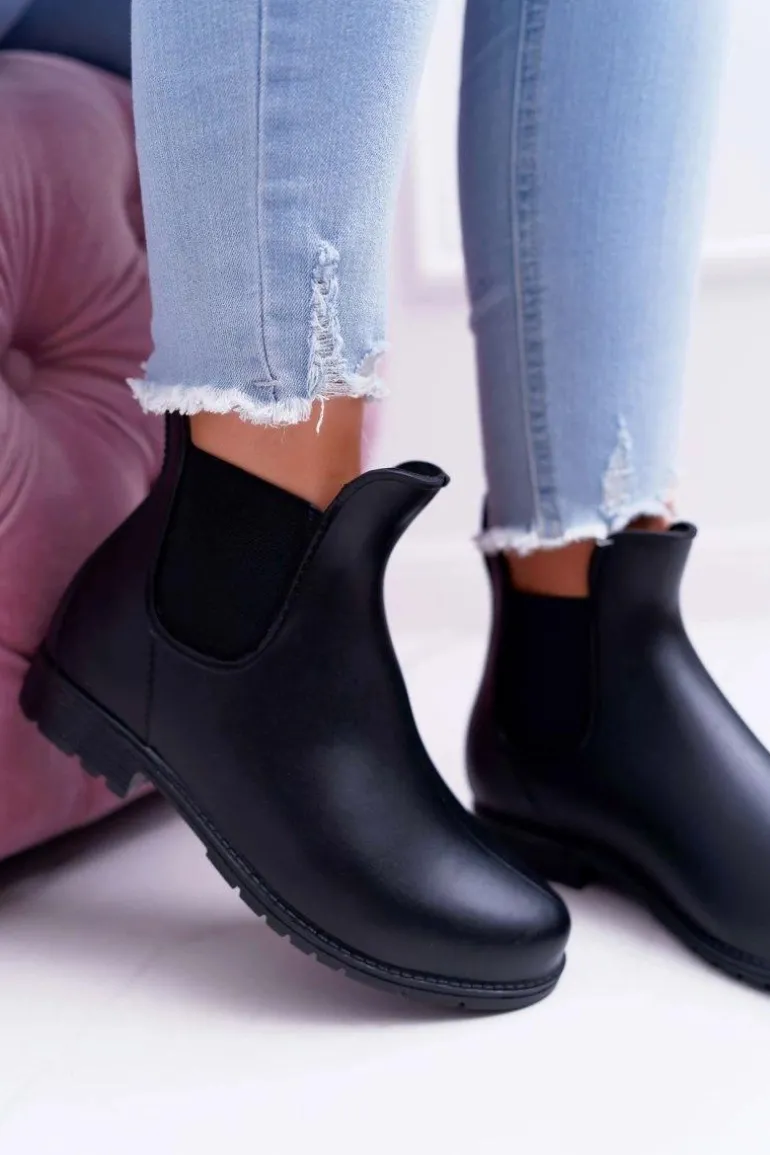 Czarne Damskie Matowe Kalosze Trapery Nabraso