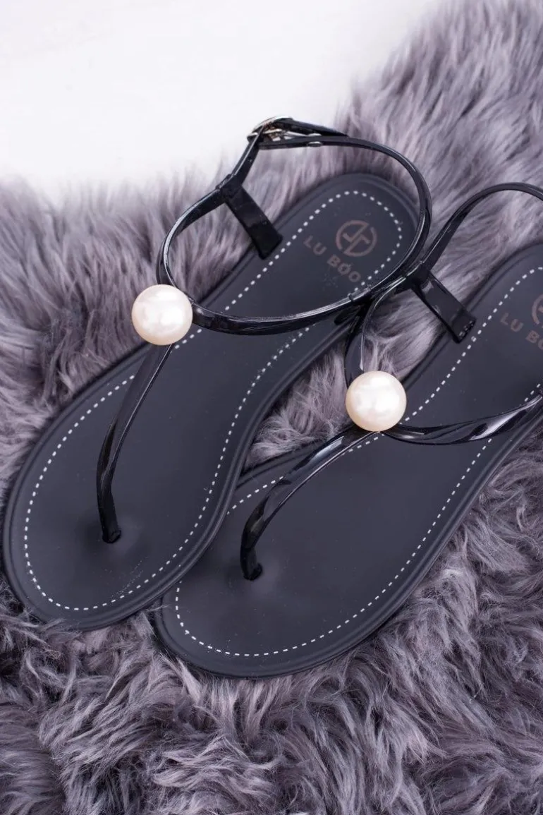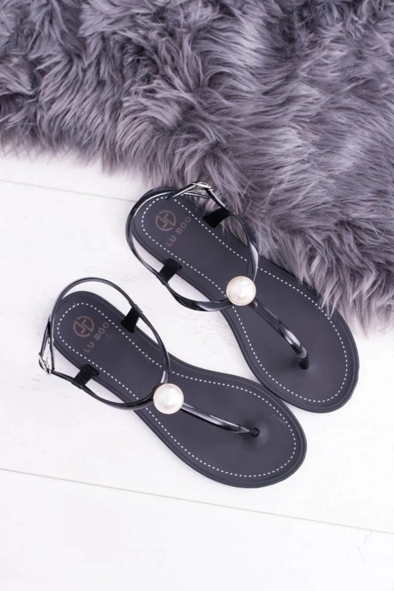 Czarne Damskie Sandałki Japonki Meliski z Perłą Contiro