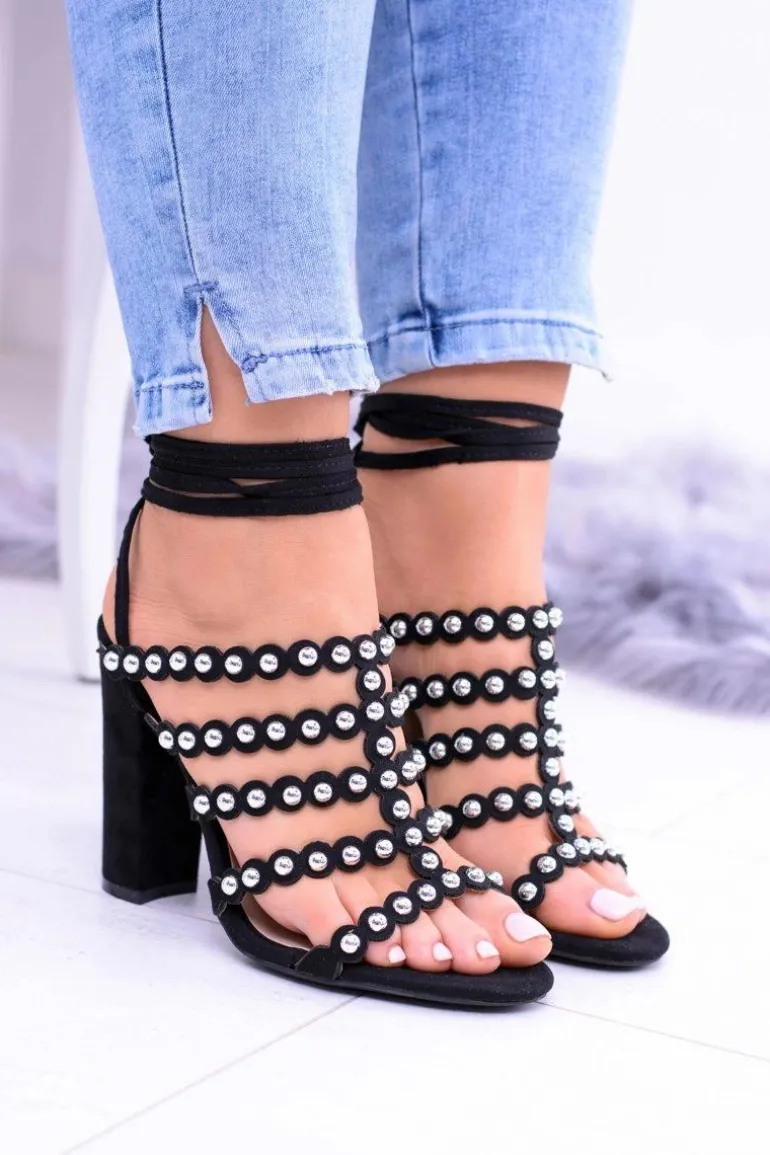 Czarne Damskie Sandały na Słupku Ysmira