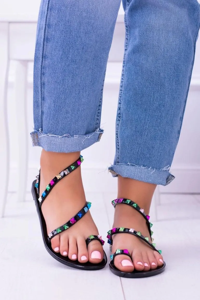 Czarne Eleganckie Wsuwane Damskie Sandały Ćwieki Gennaro