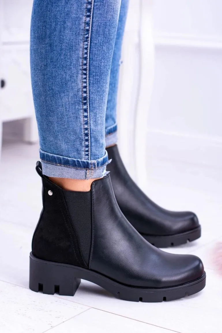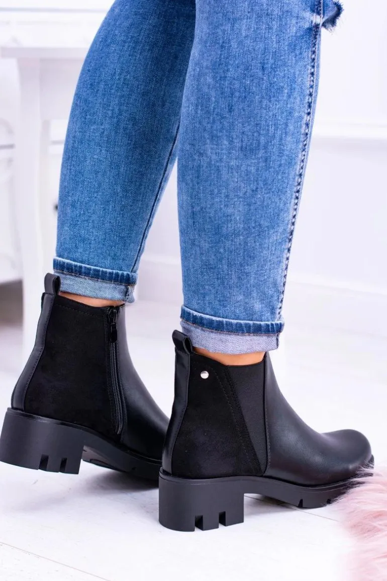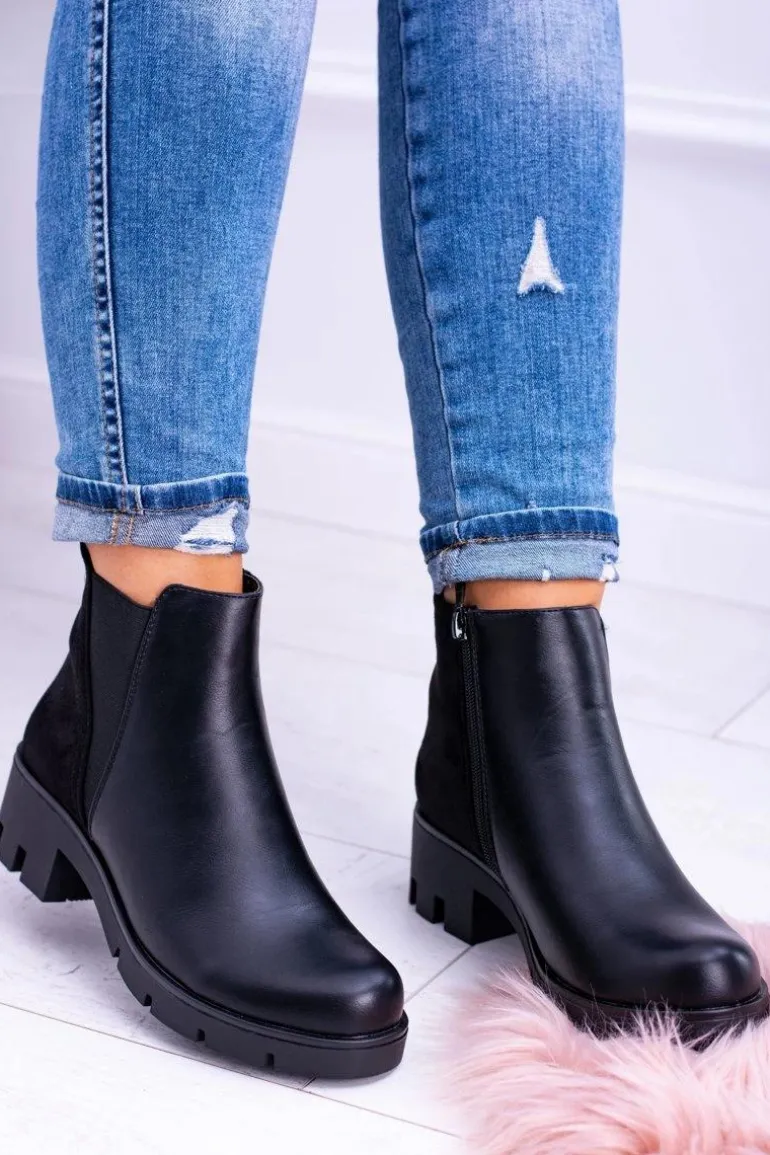 Czarne Płaskie Ocieplane Botki Murcio