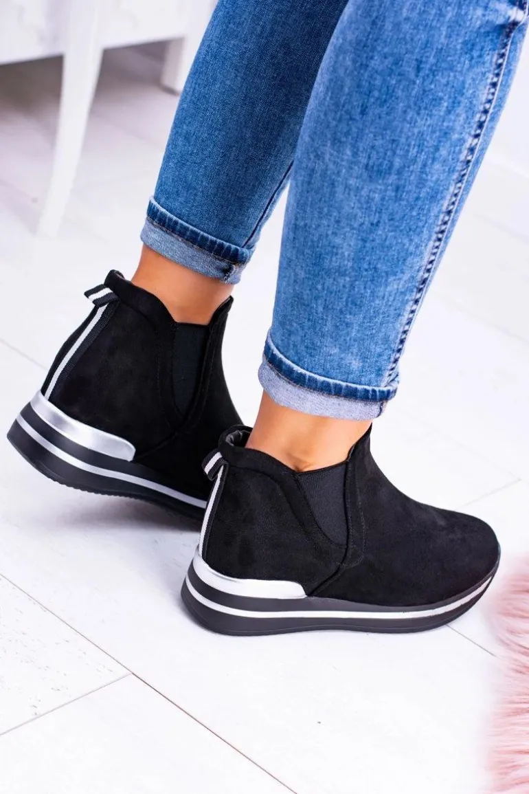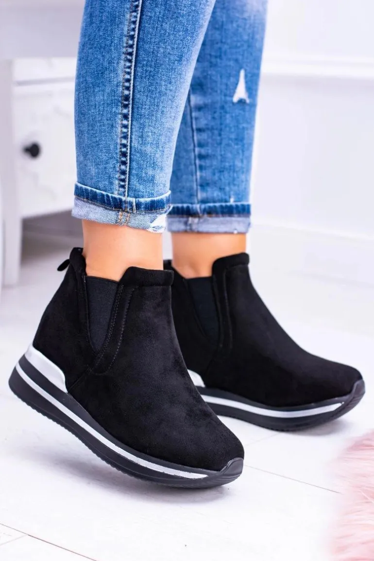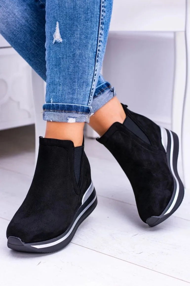 Takiego fasonu jeszcze nie było. Sportowe botki na delikatnej ukrytej koturnie oraz platformie to doskonały wybór na codzienne użytkowanie. Model z którym stworzysz nie tylko sportowe ale również inne wspaniałe stylizacje. Wykonane z przyjemnego zamszu, a wszyte gumki ułatwią zakładanie. Zobacz naszą całą kolekcję. Duża rozmiarówka, zalecamy wybór rozmiaru mniejszego.