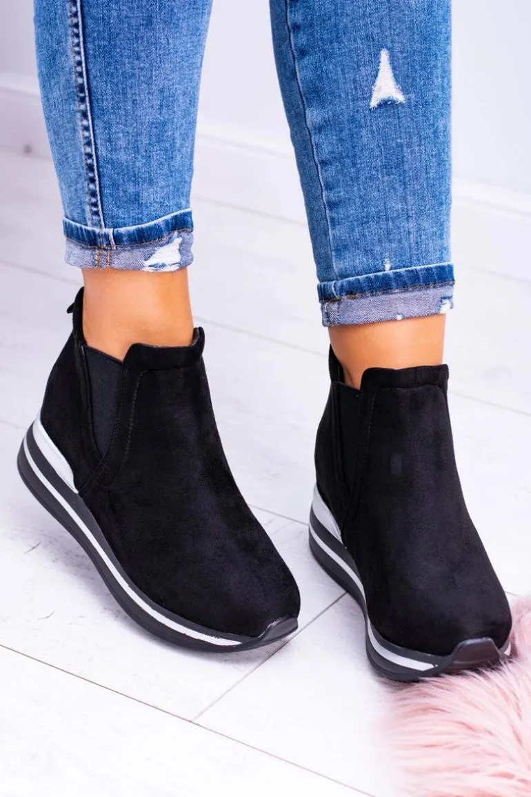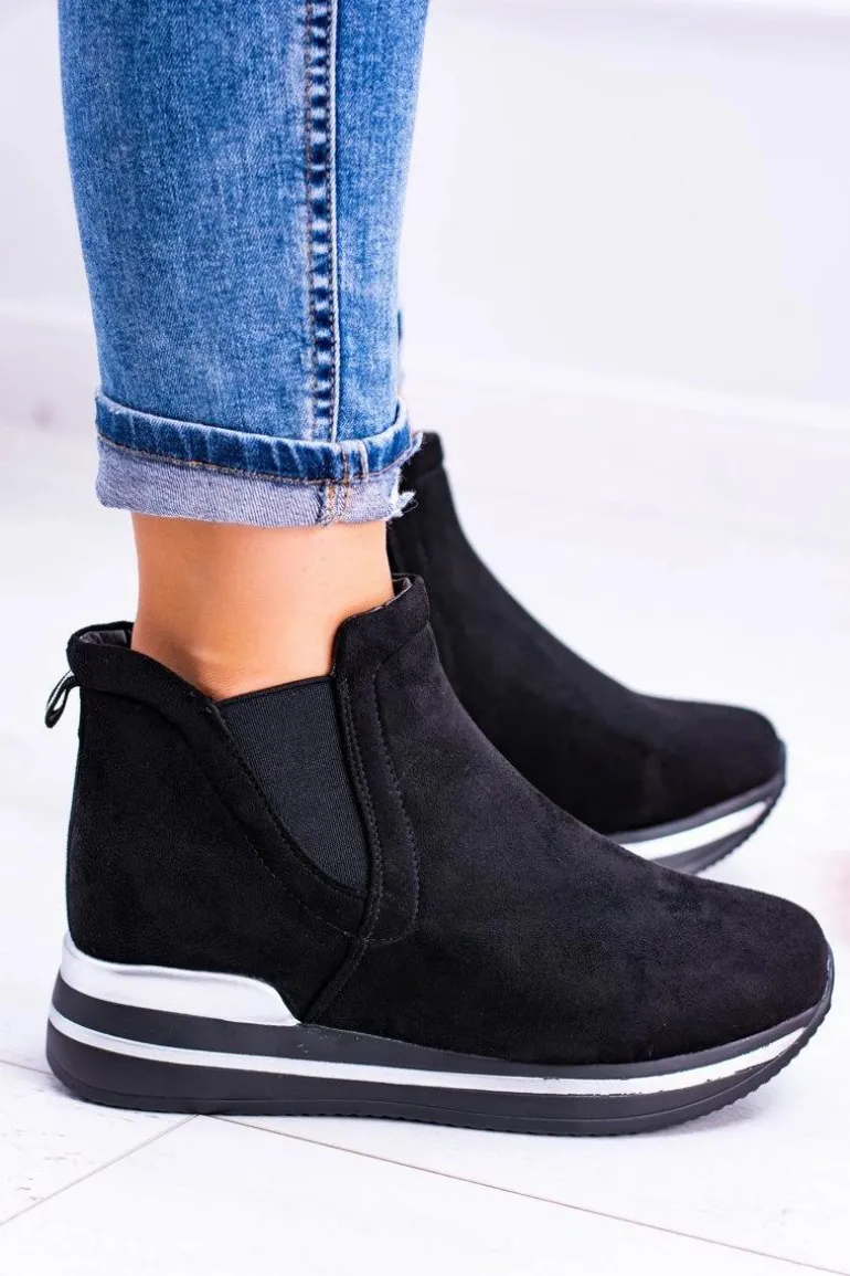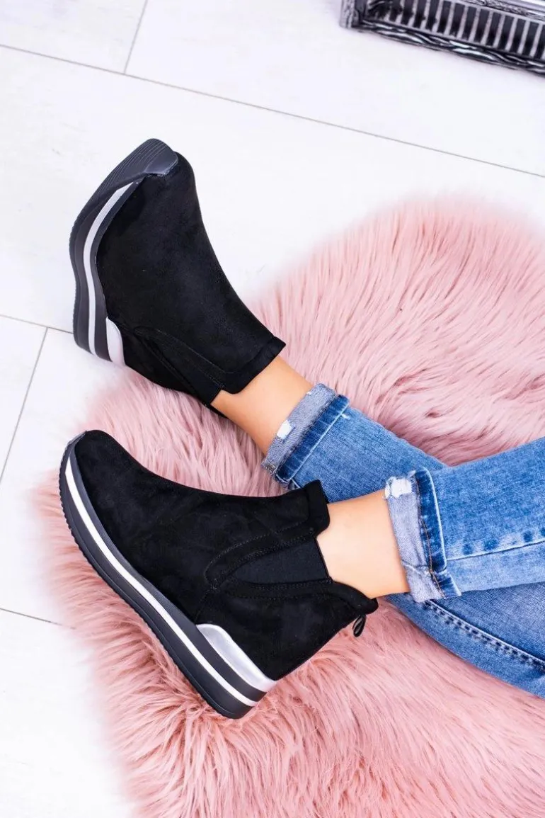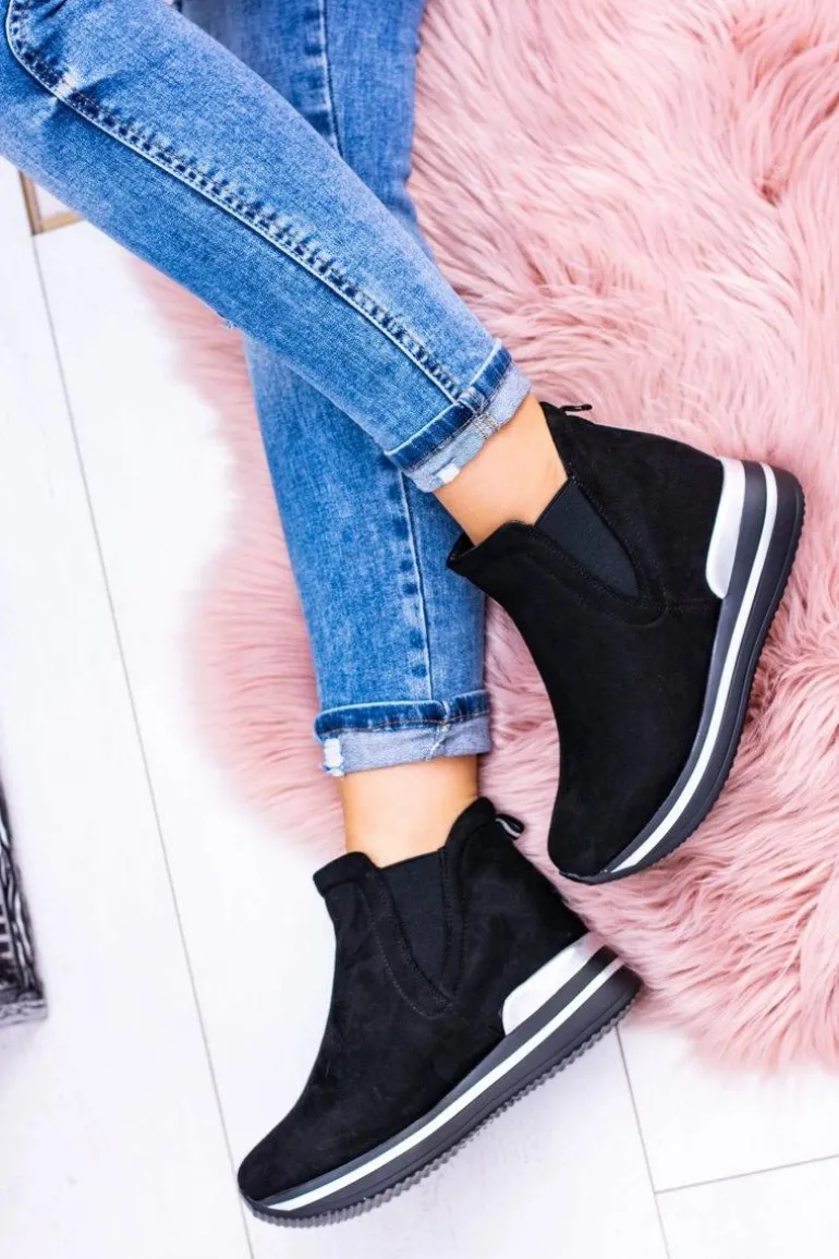 Takiego fasonu jeszcze nie było. Sportowe botki na delikatnej ukrytej koturnie oraz platformie to doskonały wybór na codzienne użytkowanie. Model z którym stworzysz nie tylko sportowe ale również inne wspaniałe stylizacje. Wykonane z przyjemnego zamszu, a wszyte gumki ułatwią zakładanie. Zobacz naszą całą kolekcję. Duża rozmiarówka, zalecamy wybór rozmiaru mniejszego.
