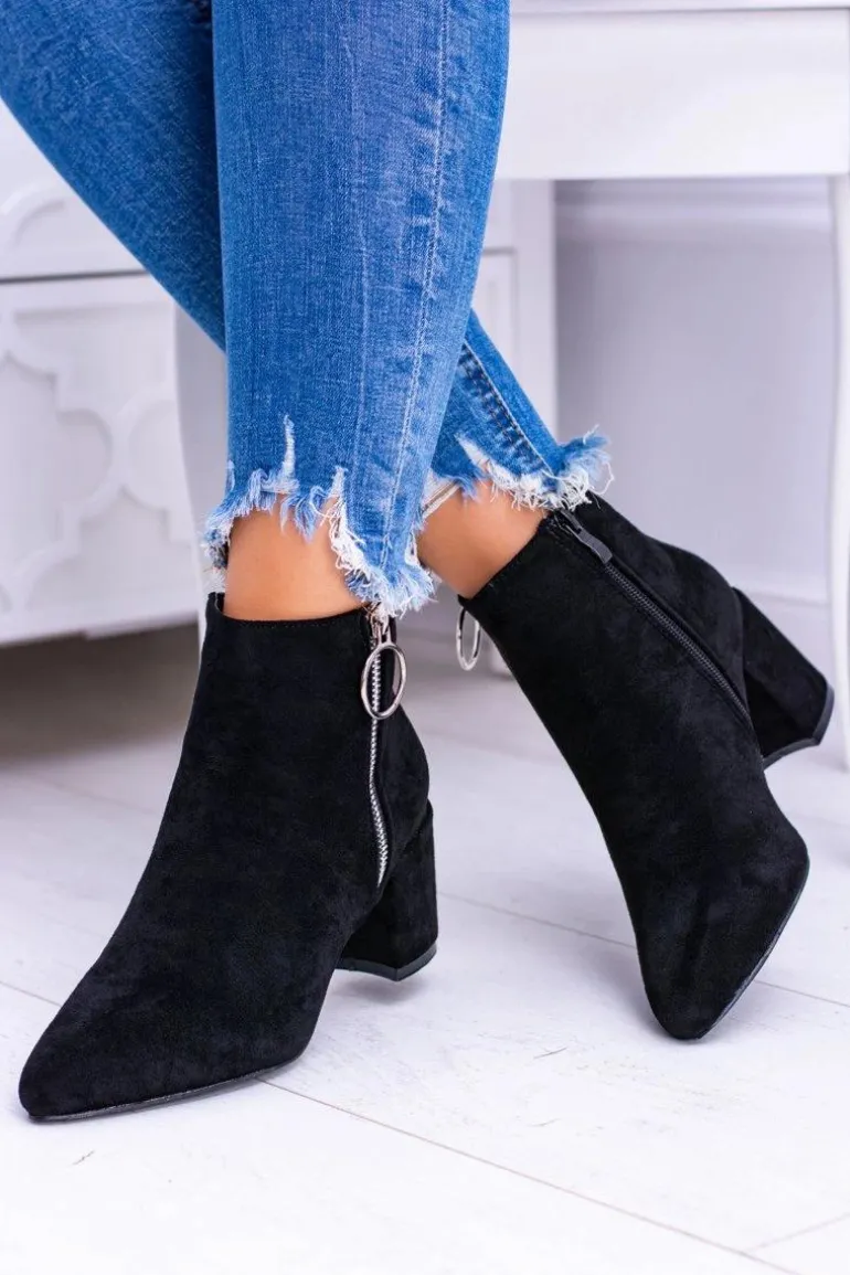 Czarne Zamszowe Botki Na Słupku w Szpic Jonnes