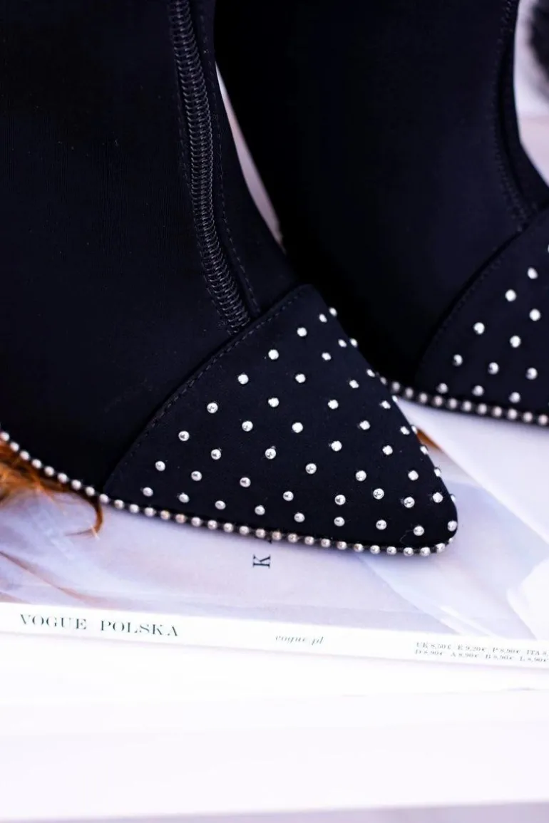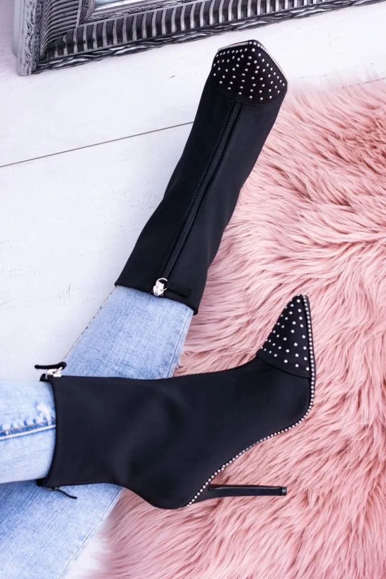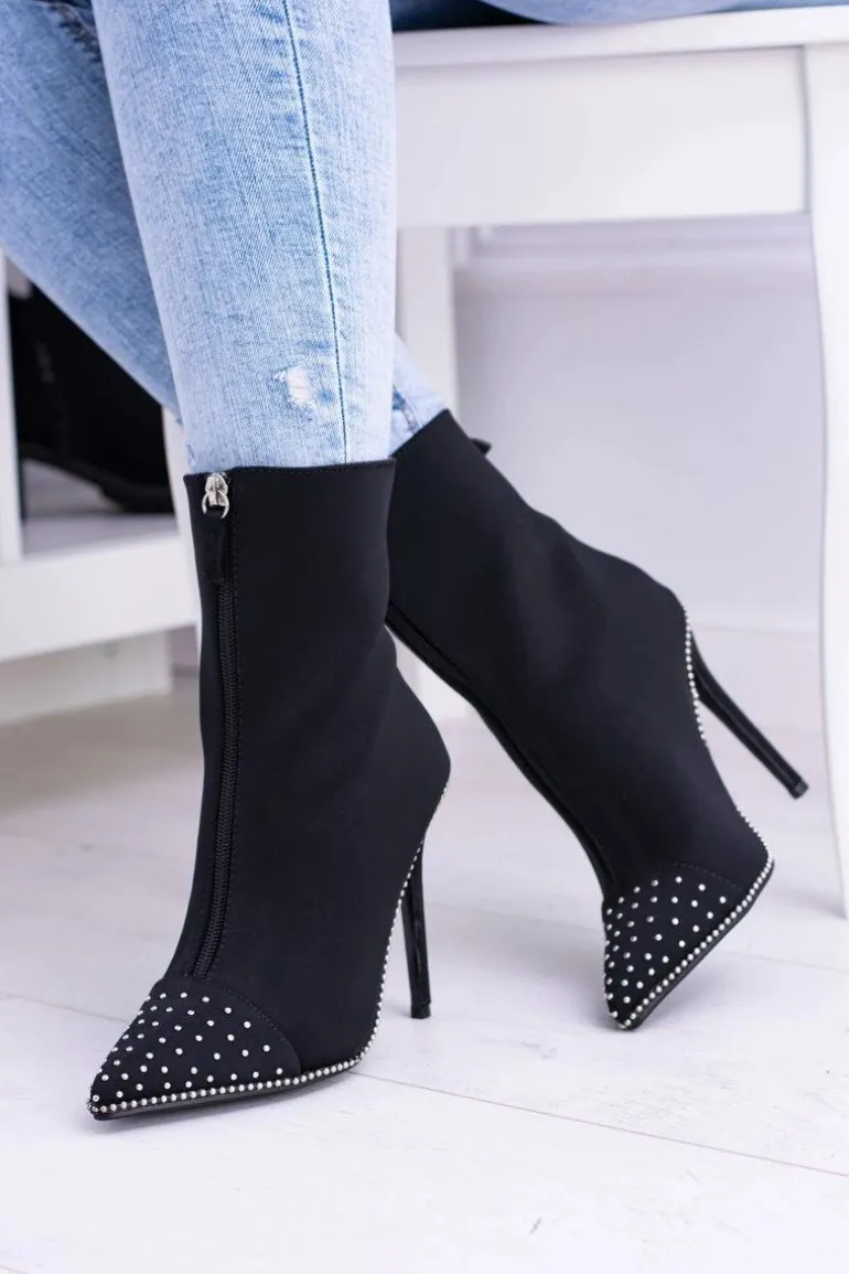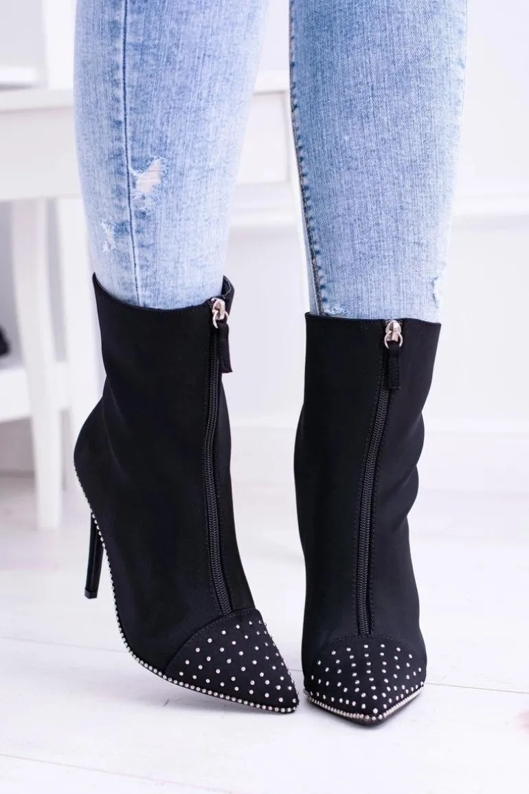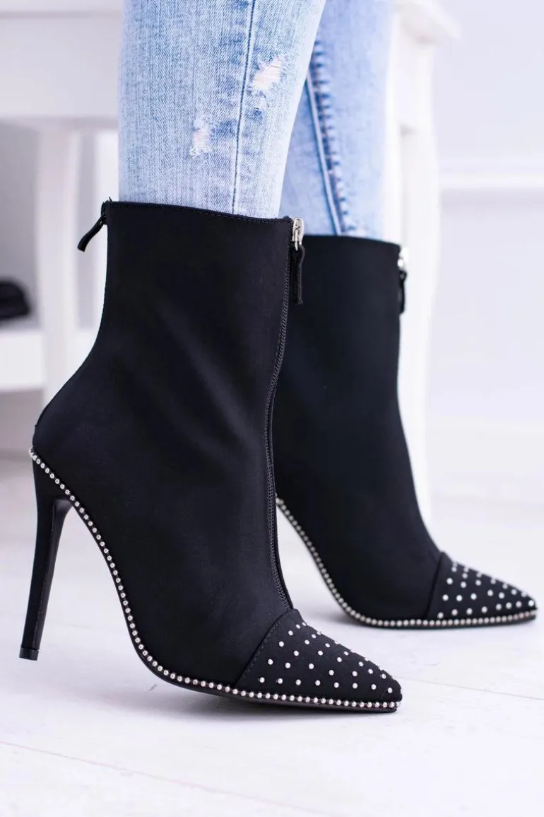 Czarne Zamszowe Botki na Szpilce Regio