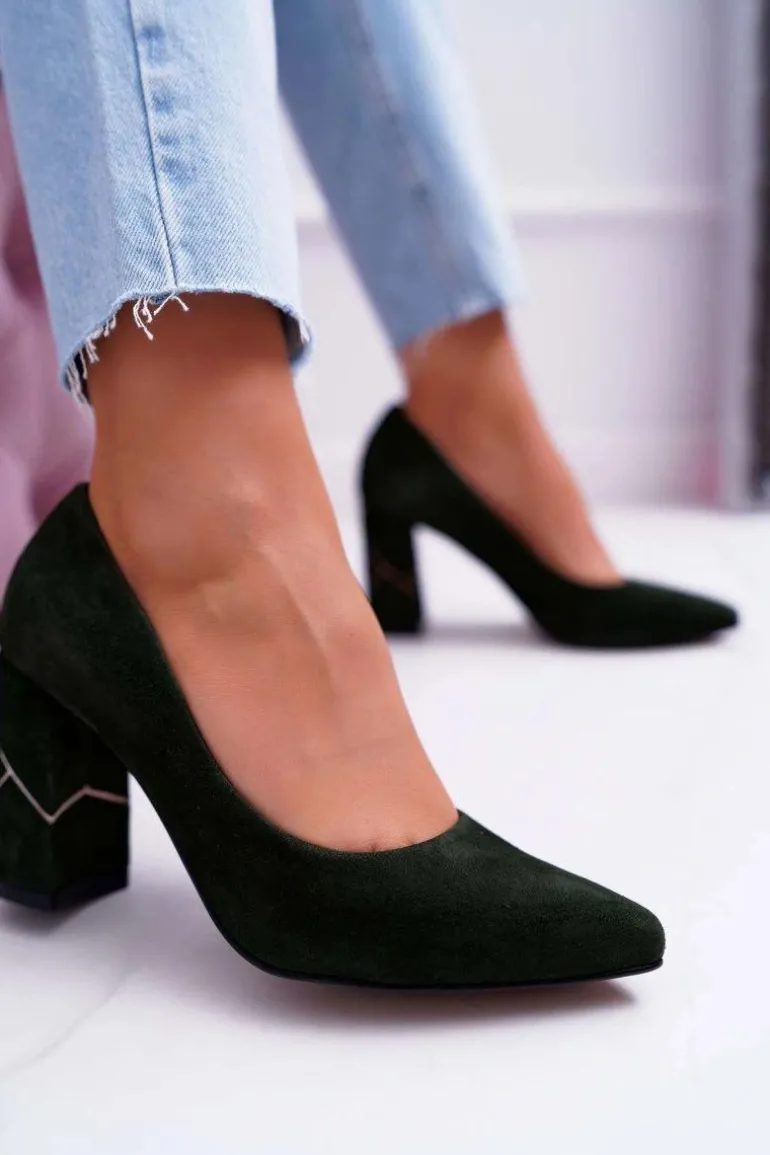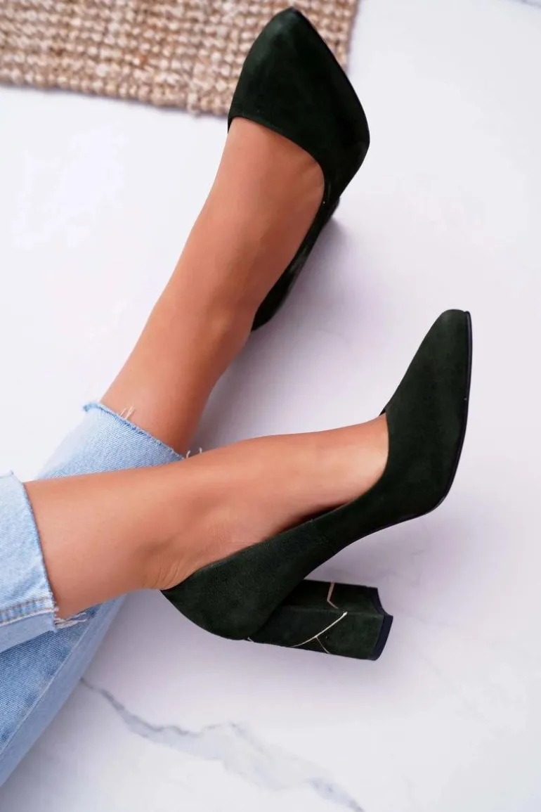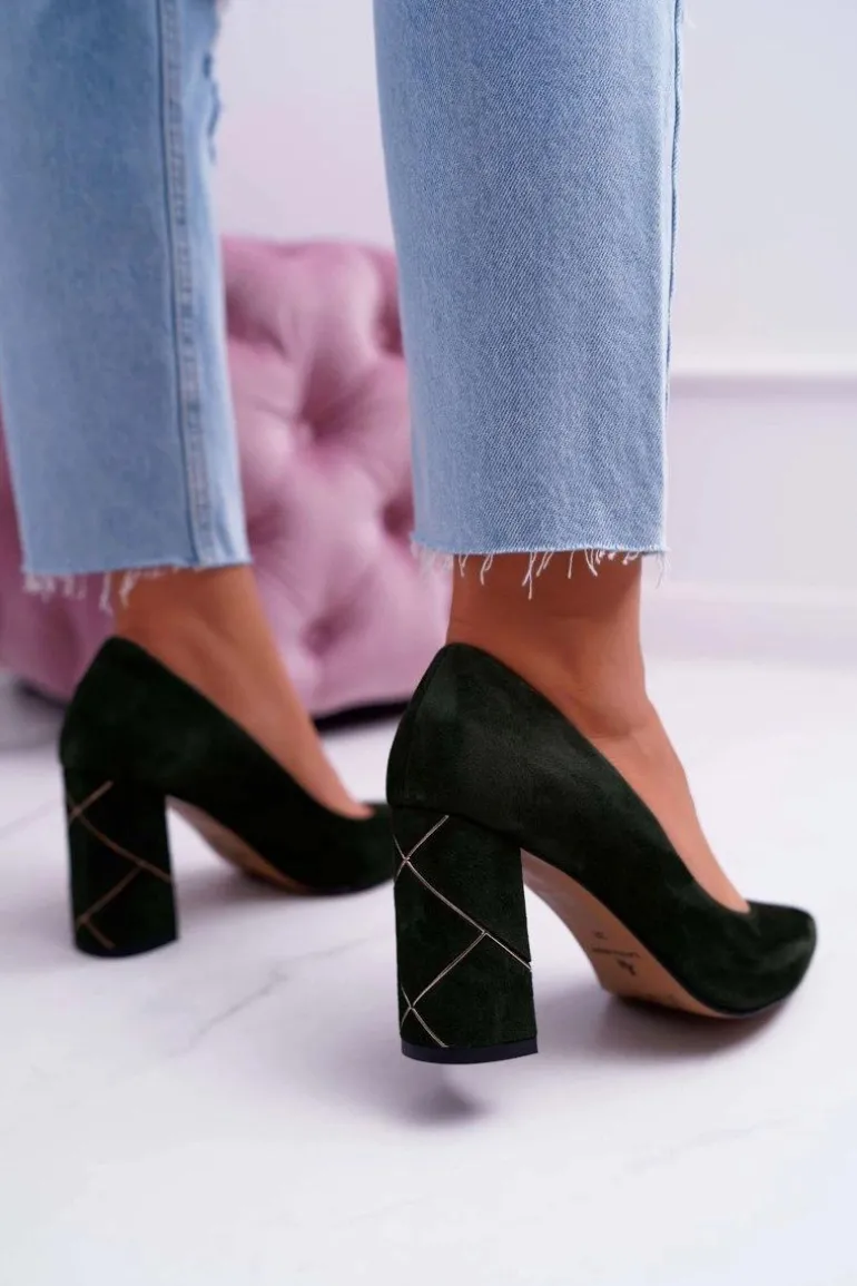 Czółenka Damskie Laura Messi Zamszowe Oliwkowe 2050
