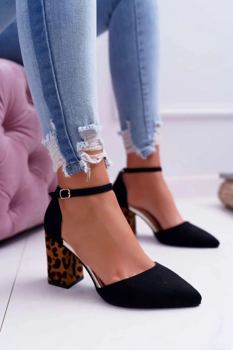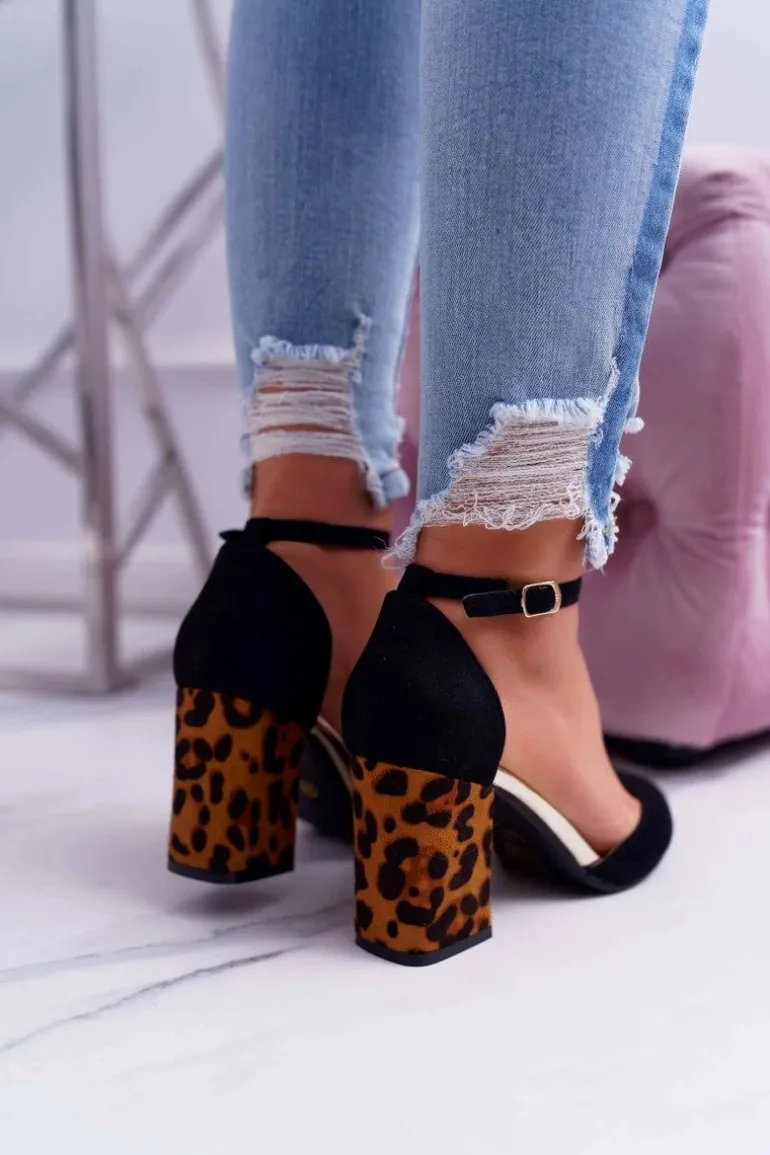Czółenka Damskie Na Słupku Panterki Czarne Ferri