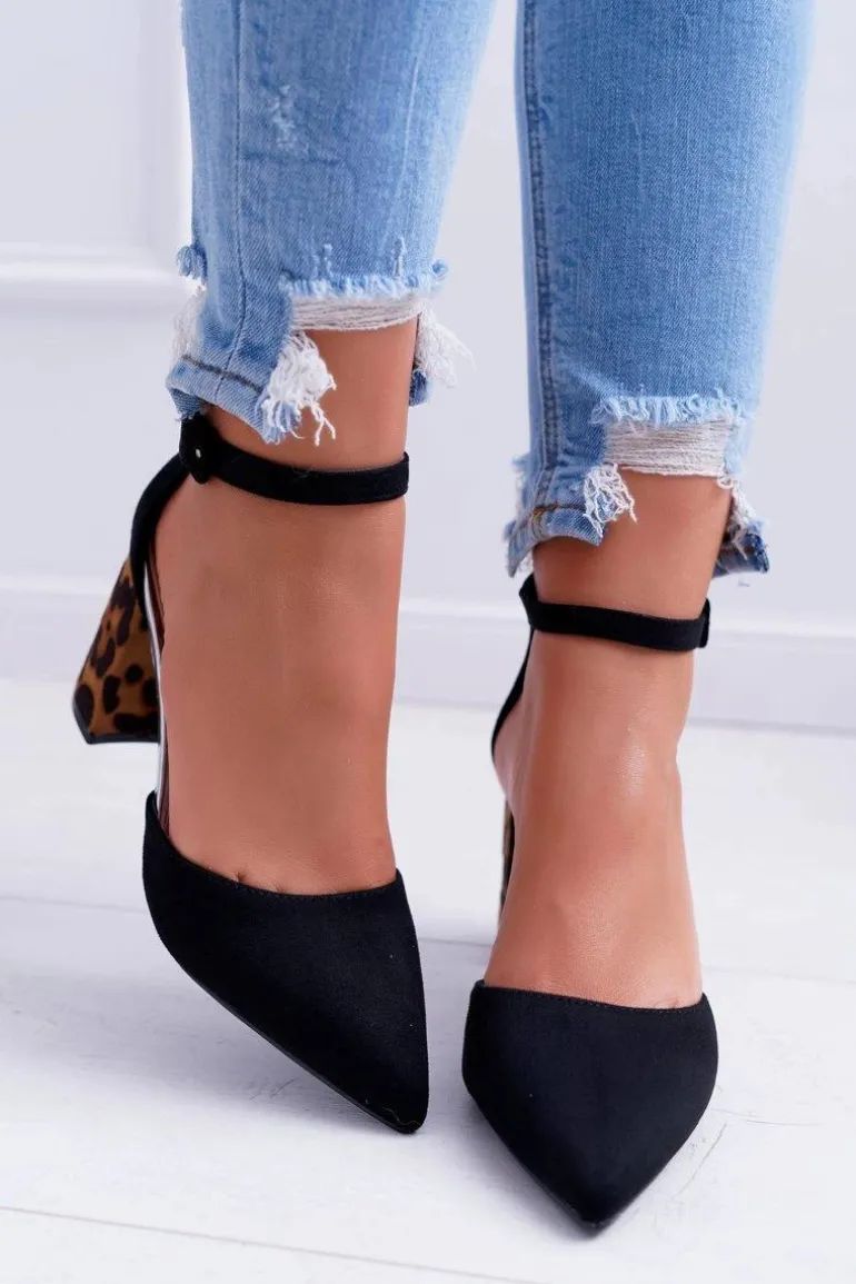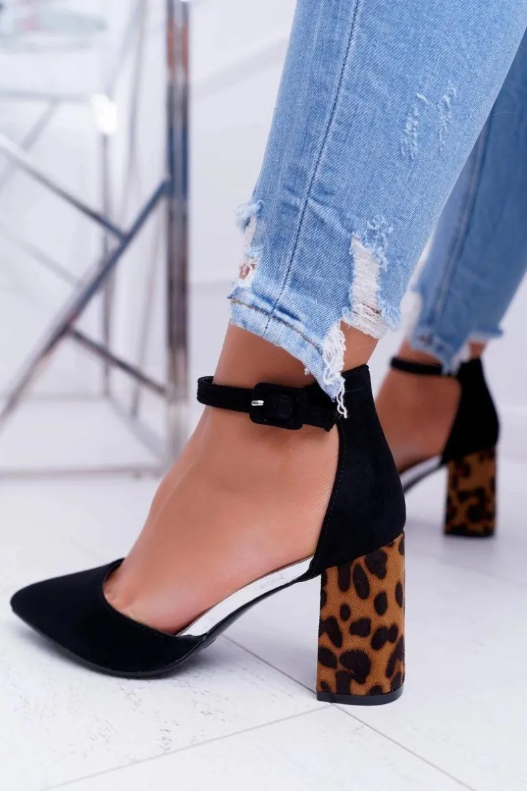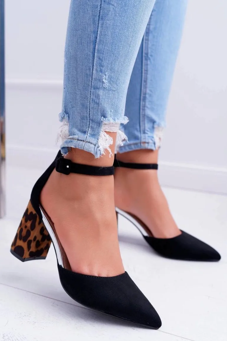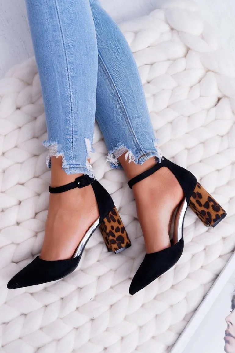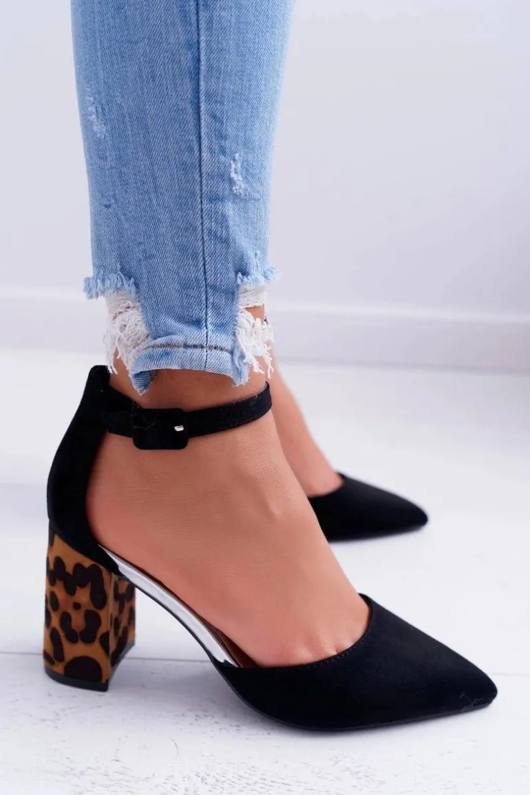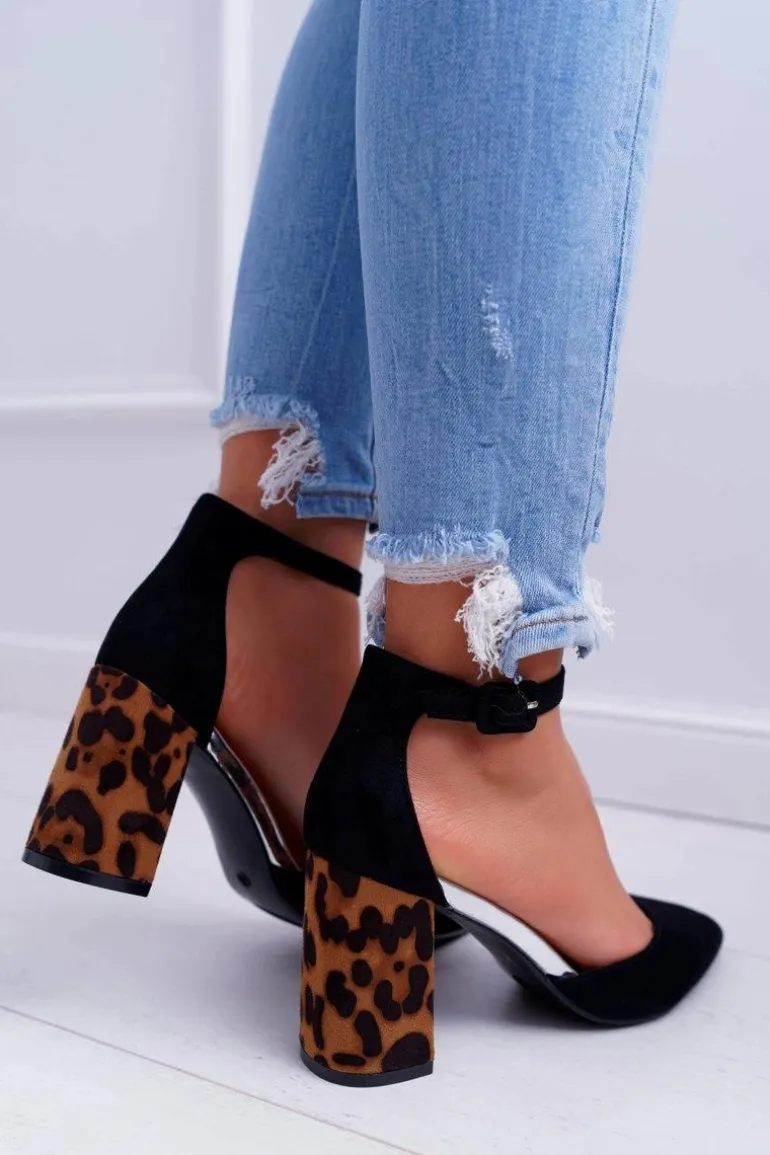 Czółenka Damskie Na Słupku Panterki Czarne Ferri