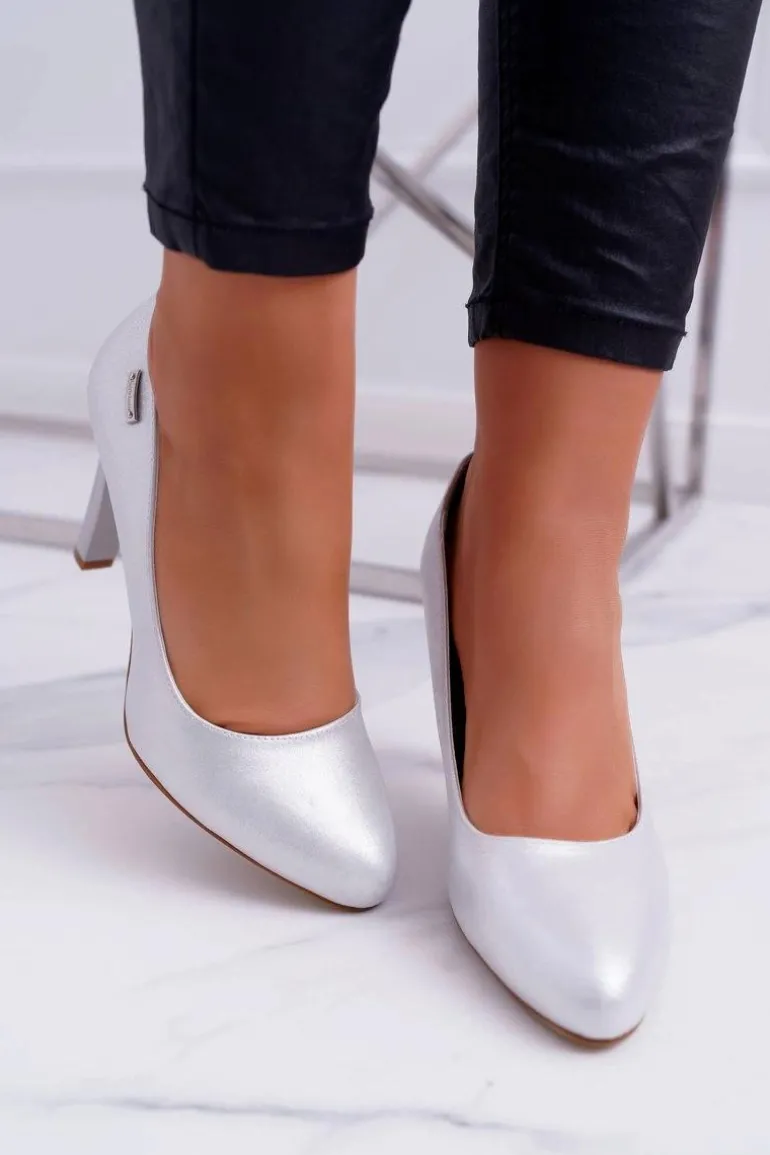 Czółenka Damskie Na Słupku Sergio Leone 1457 Srebrne Campbell