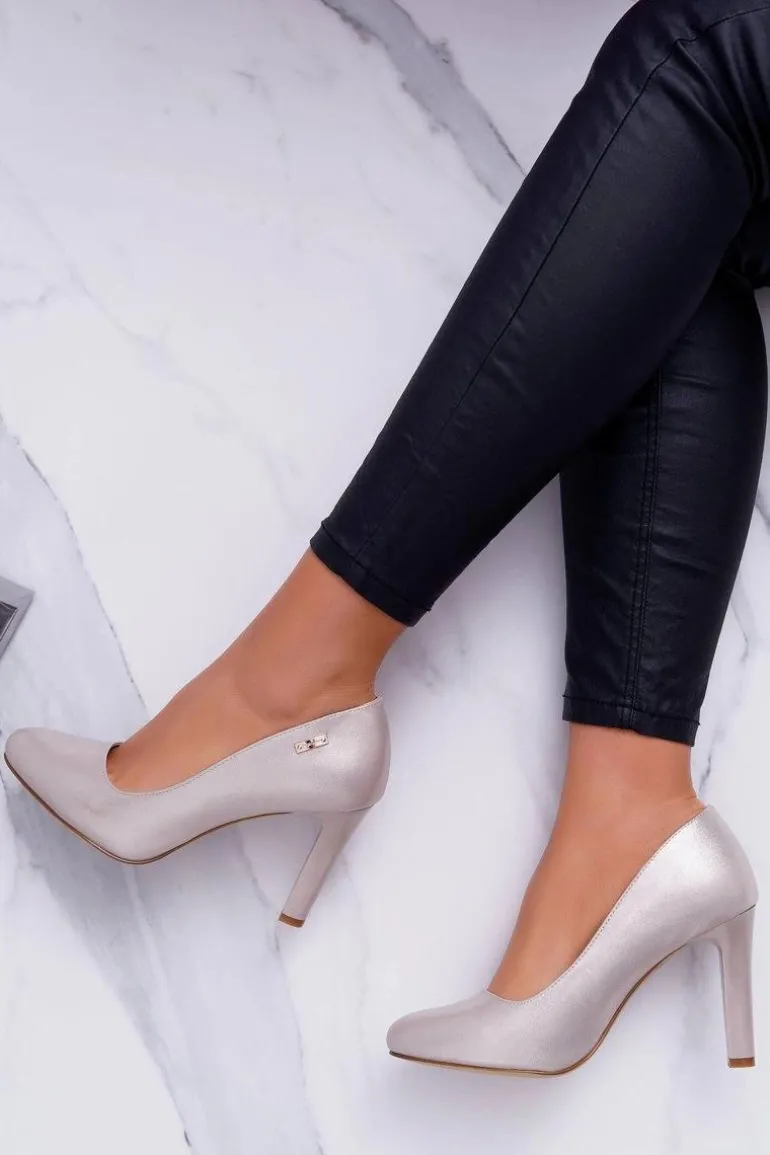 Czółenka Damskie Na Słupku Sergio Leone 1457 Złote Campbell