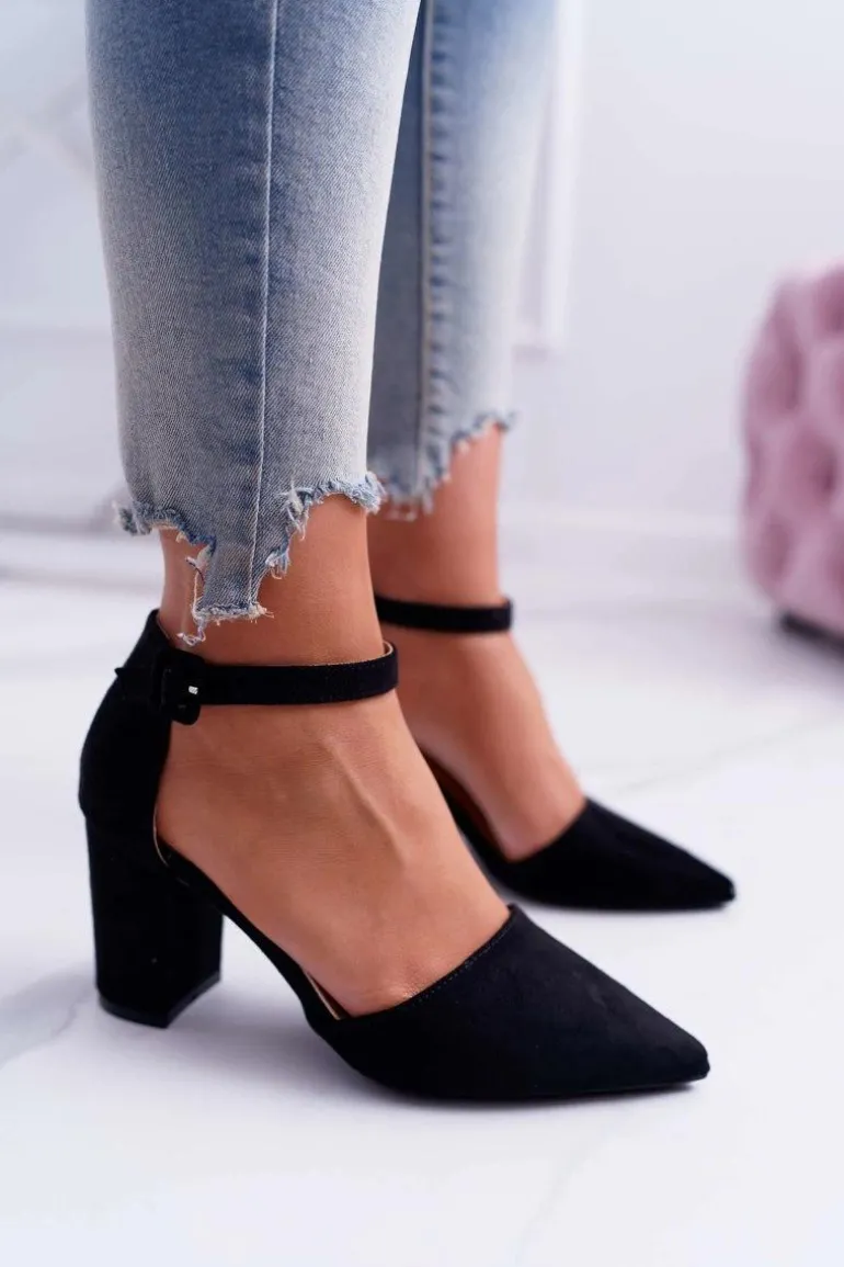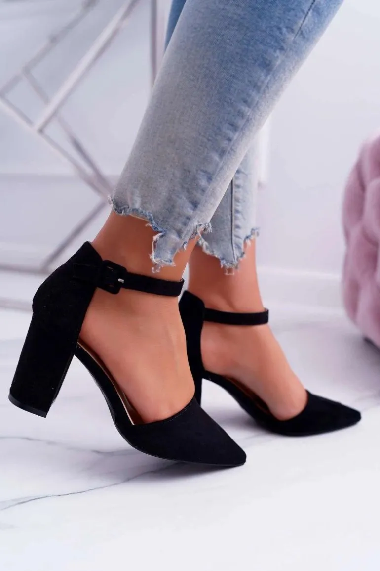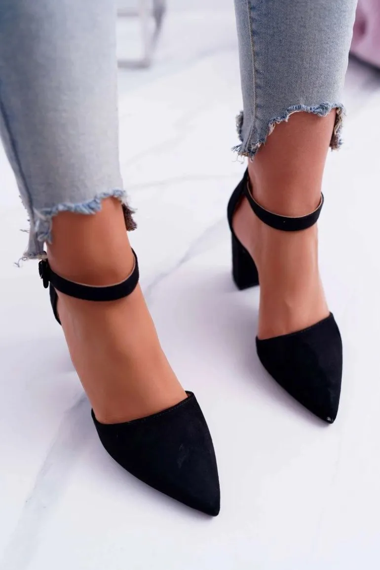 Czółenka Damskie Na Słupku W Szpic Czarne MadamStyle