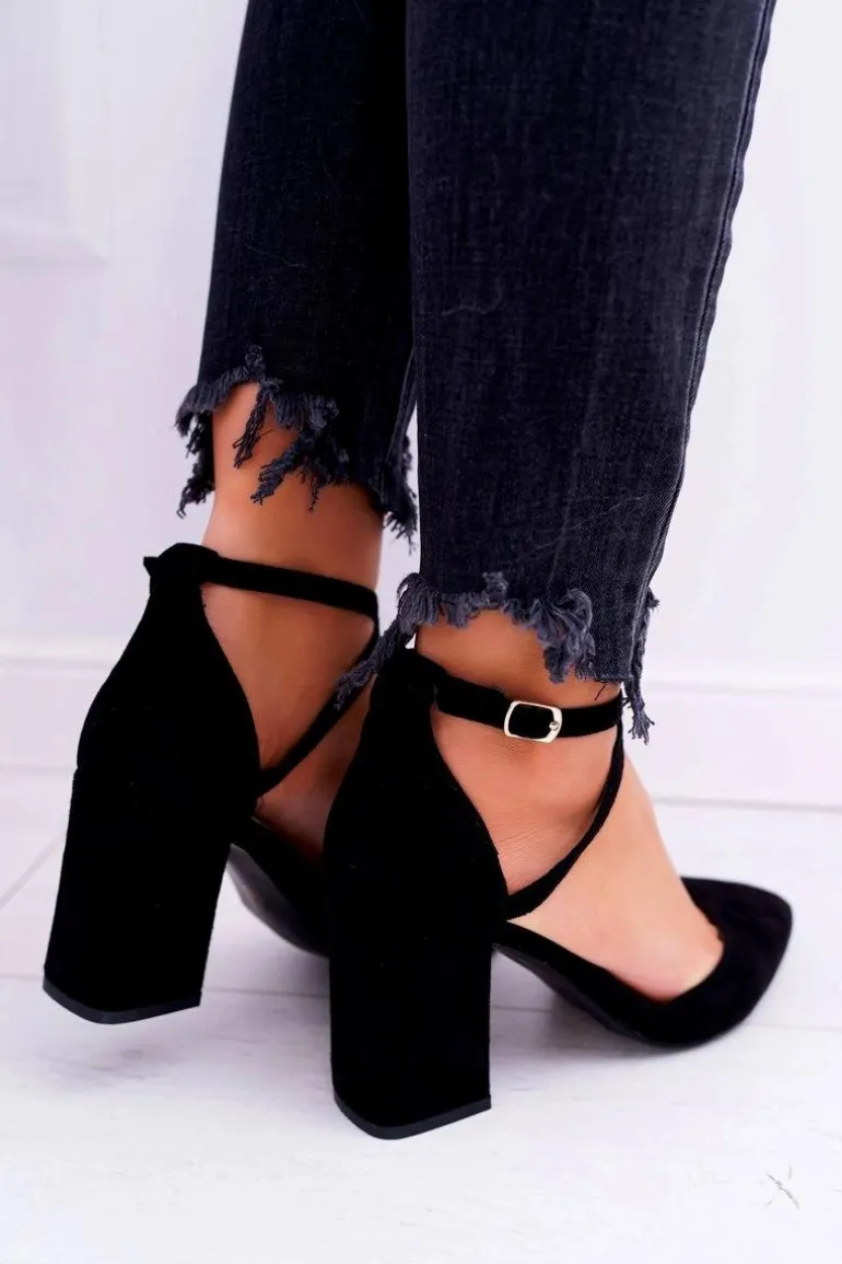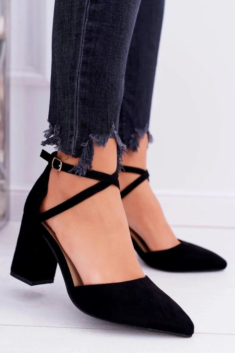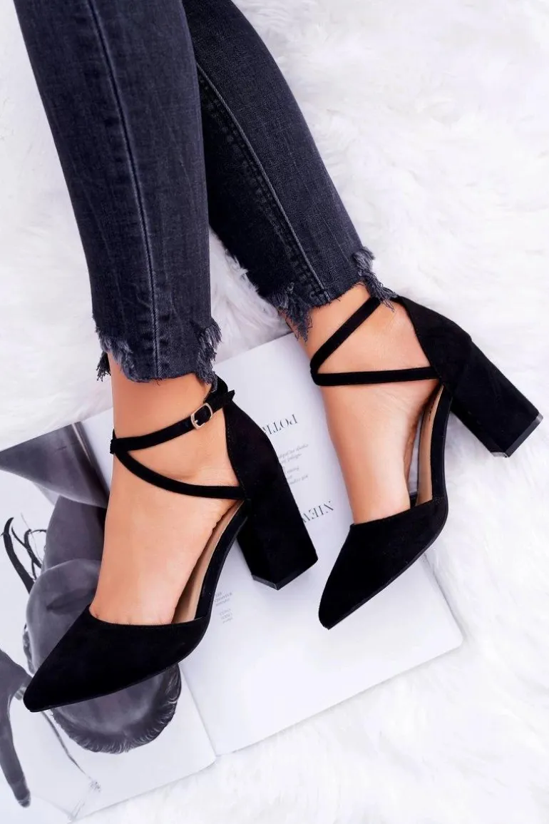Czółenka Damskie Na Słupku W Szpic Czarne Traffic