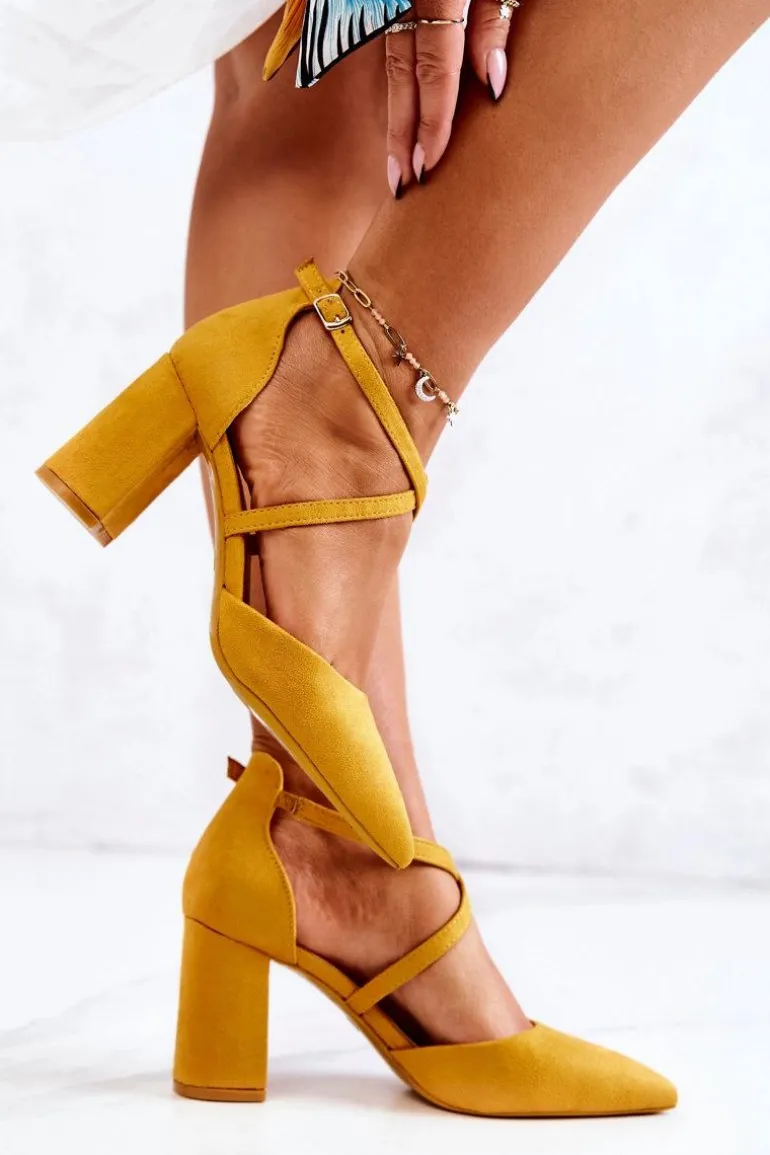 Czółenka Damskie Na Słupku W Szpic Żółte Future