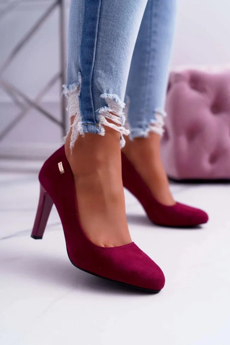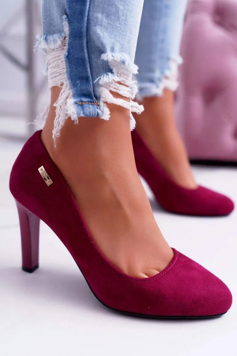 Czółenka damskie Na Słupku Zamsz Ciemna Fuksja Sergio Leone Campbell