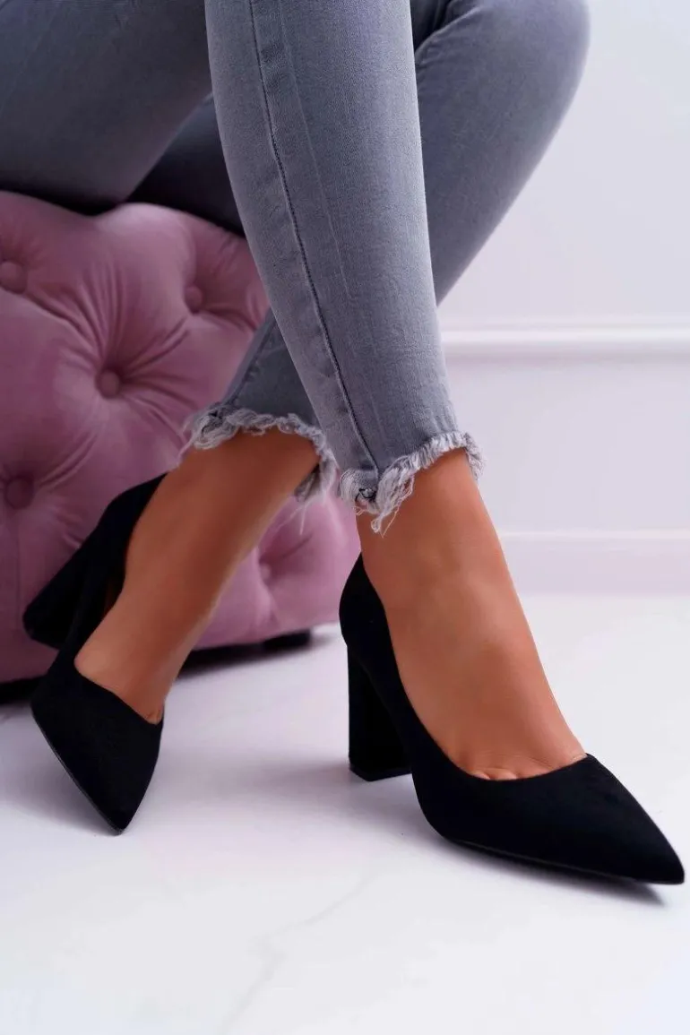 Czółenka Damskie Na Słupku Zamszowe Czarne Clarina