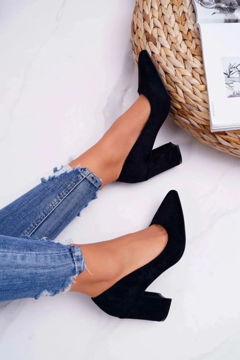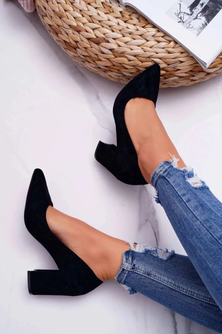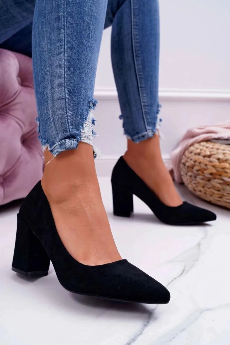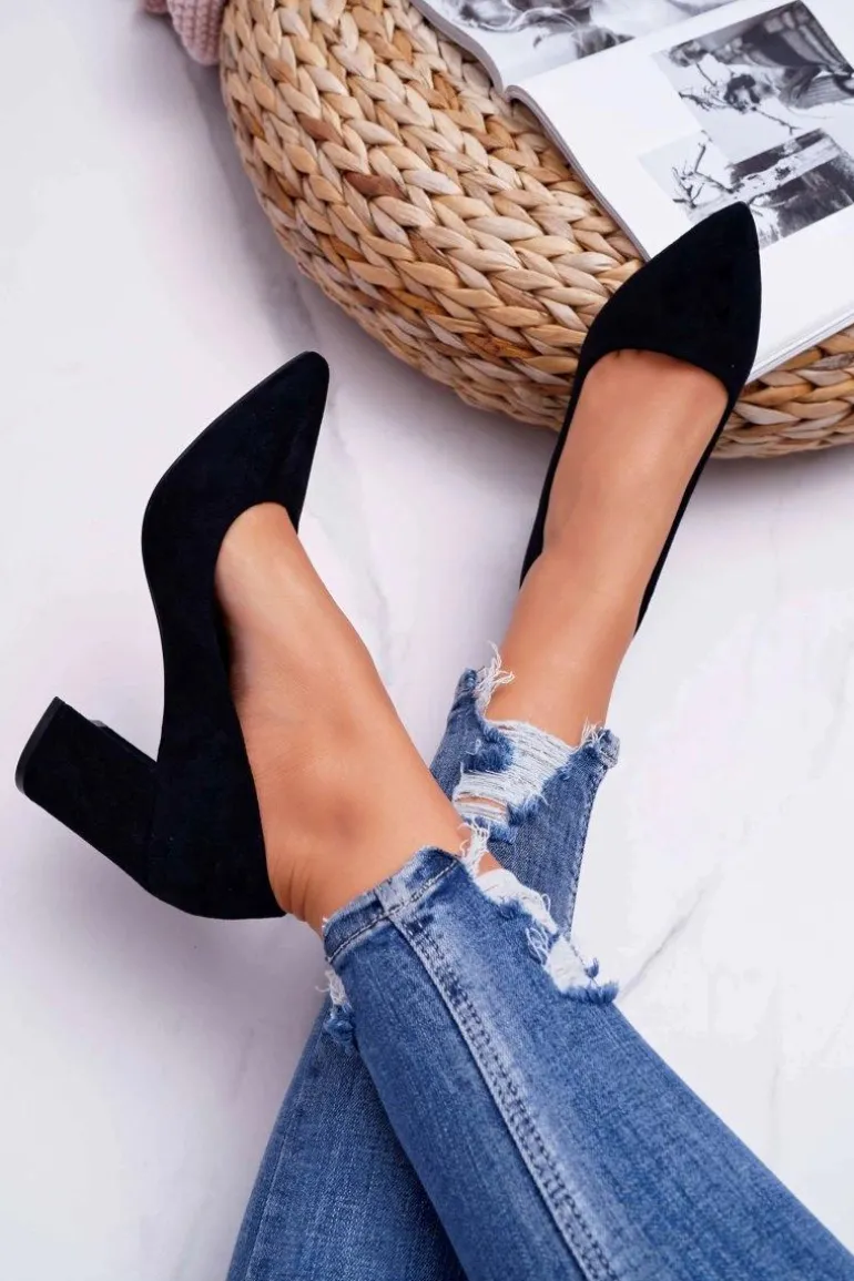 Czółenka Damskie Na Słupku Zamszowe Czarne Femmini