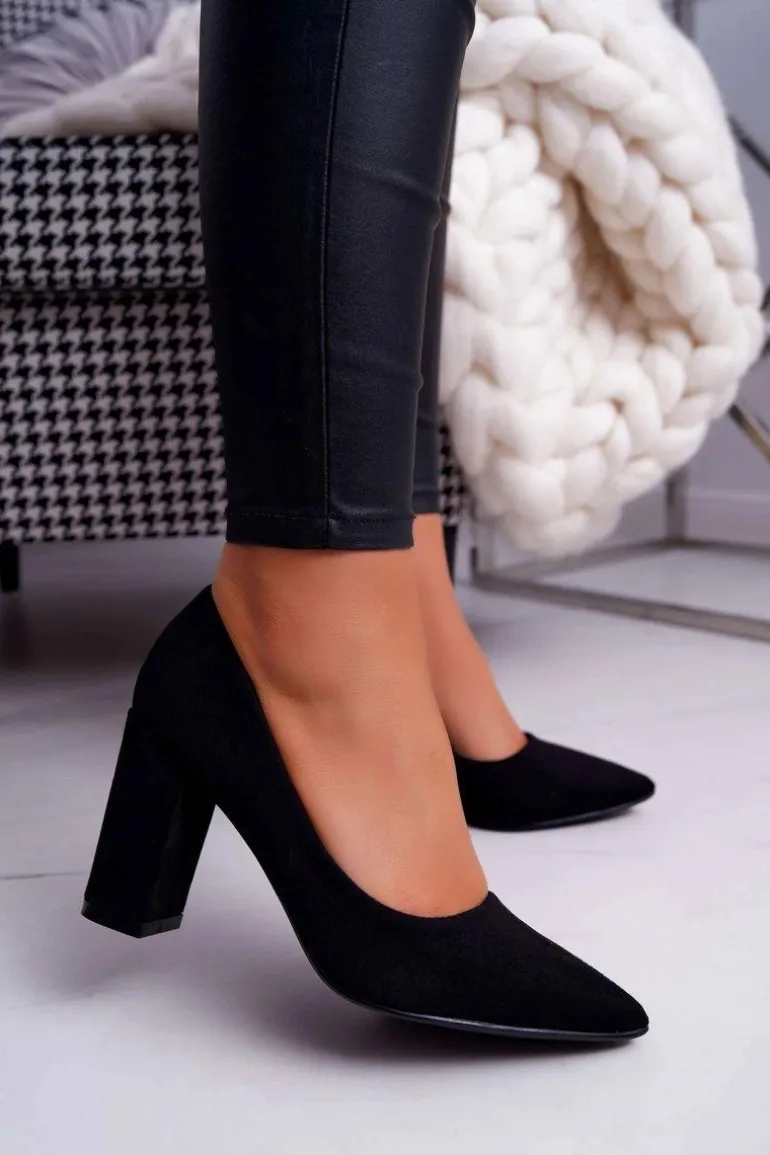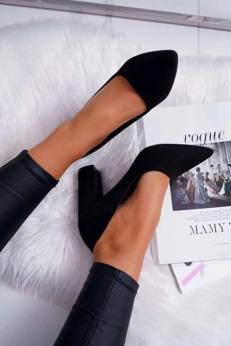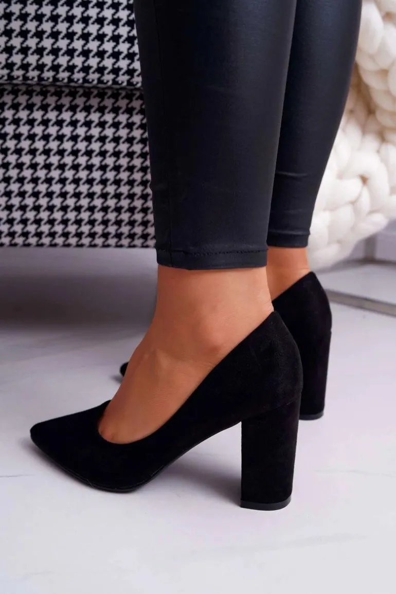 Czółenka Damskie Na Słupku Zamszowe Czarne Florena