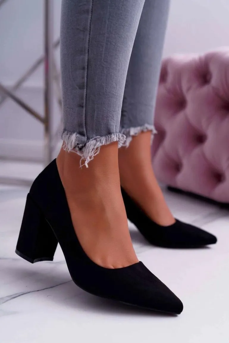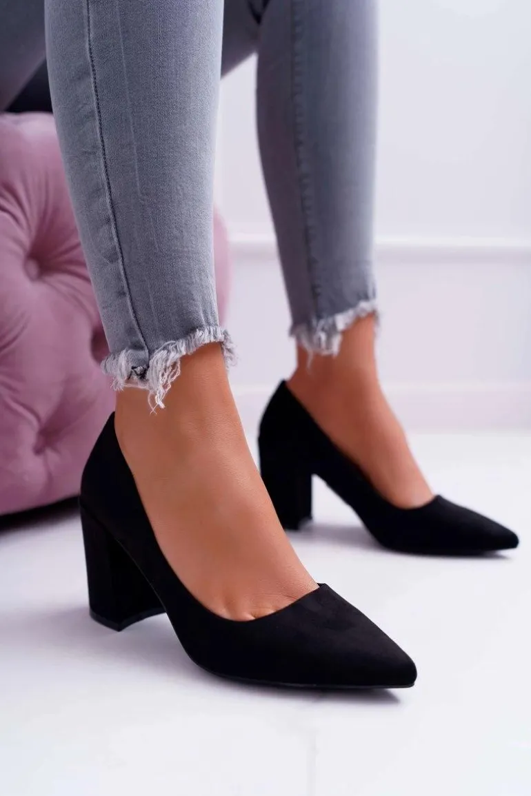 Czółenka Damskie Na Słupku Zamszowe Czarne Neshka