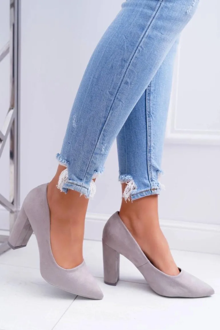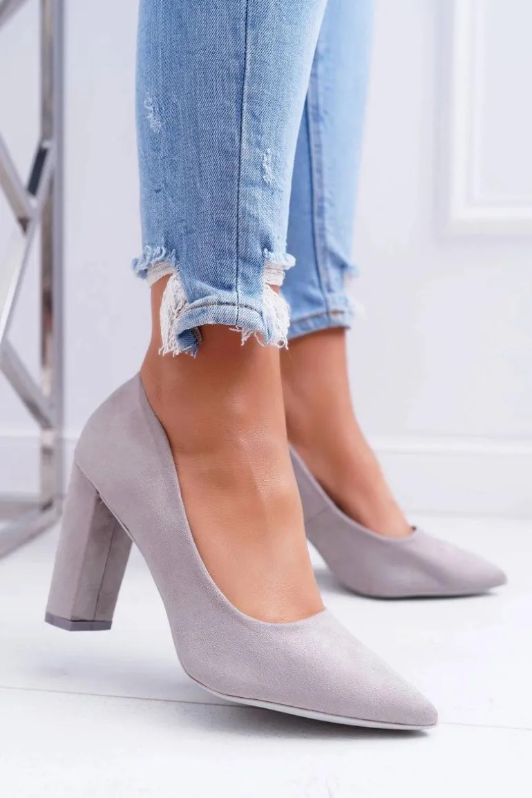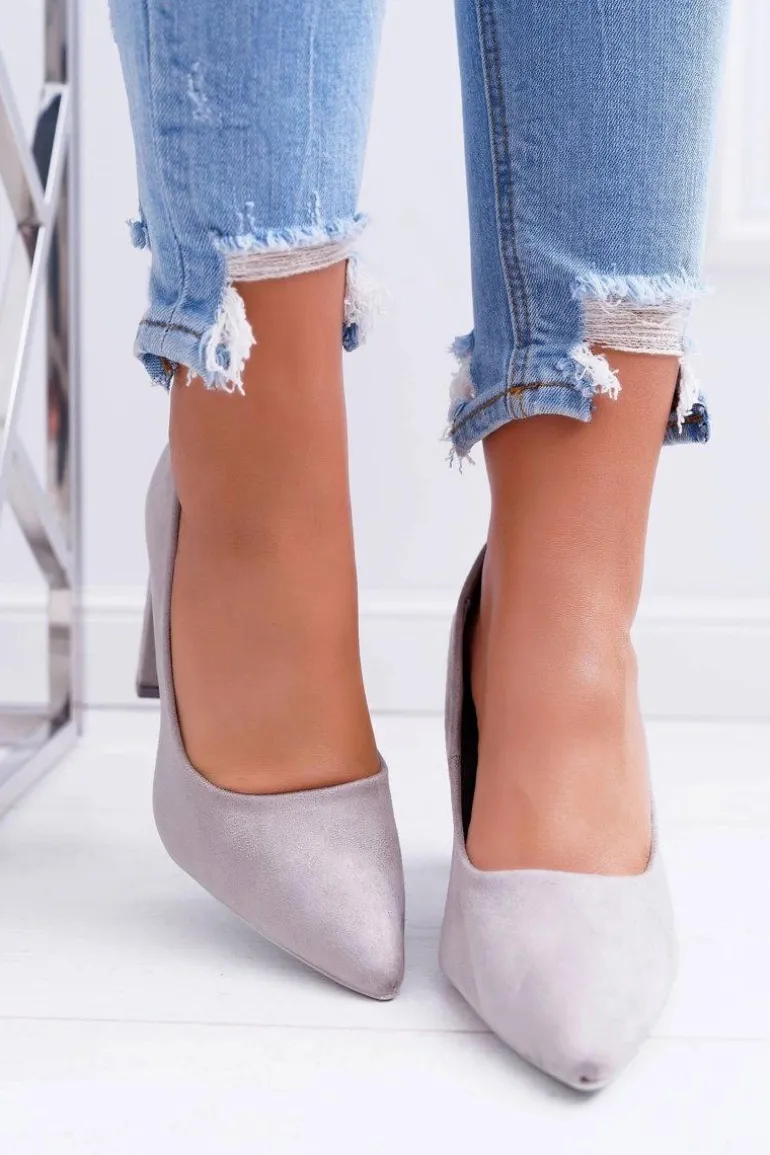 Czółenka Damskie Na Słupku Zamszowe Szare Strawberry