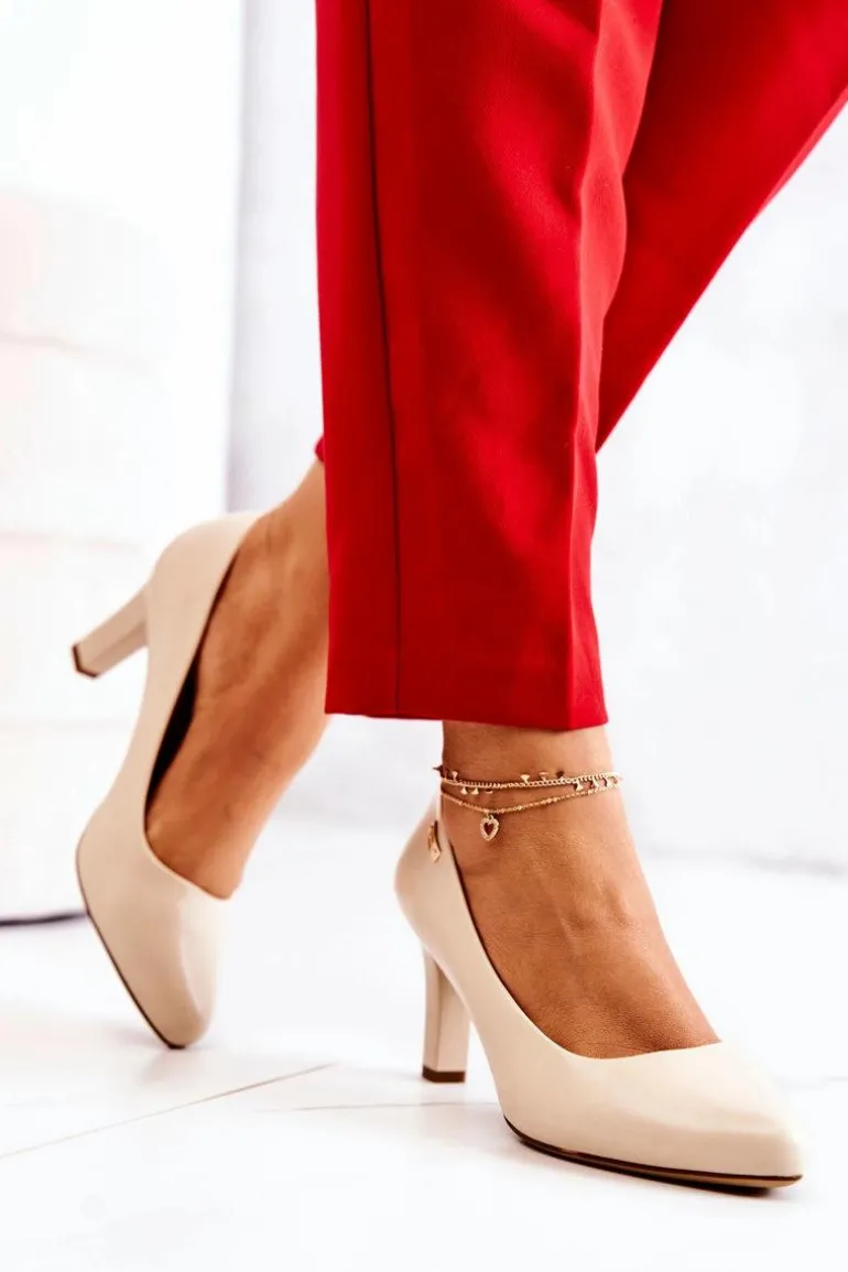 Czółenka Damskie Sergio Leone Beżowe Matowe Orsola