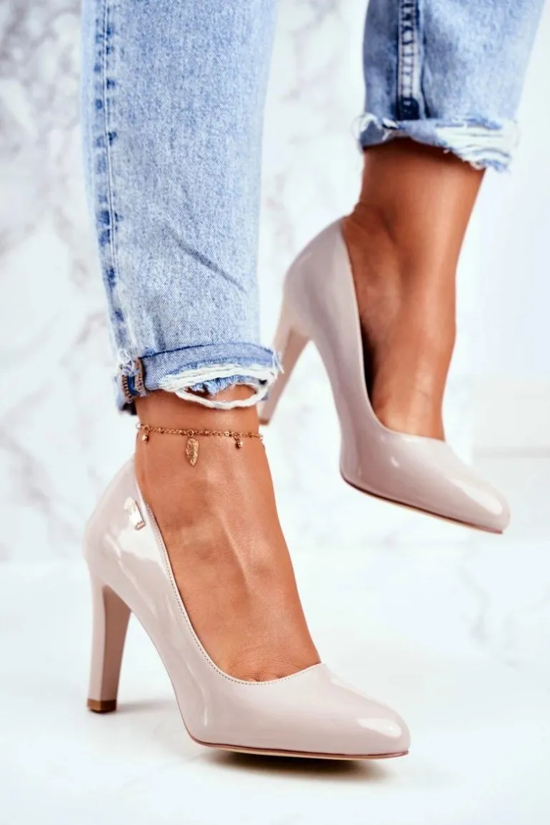 Czółenka Damskie Sergio Leone Na Słupku Lakier Jasnoszare Campbell