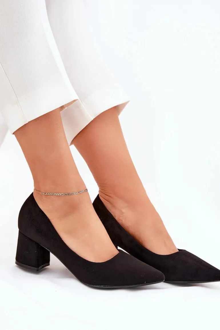 Czółenka Damskie Ze Szpiczastymi Noskami Na Słupku Czarne Merinette