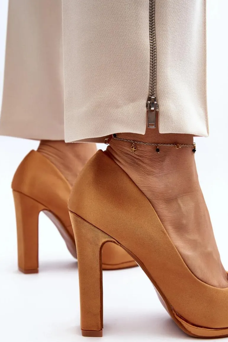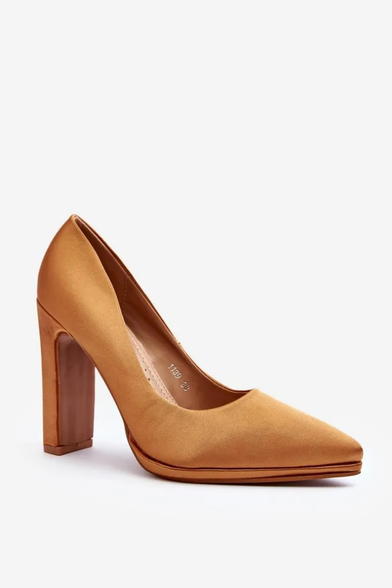 Modne czółenka na obcasie w postaci słupka, z pewnością przypadną do gustu kobietom kochającym wysokie obcasy! Wykonane z materiału tekstylnego imitującego satynę. Miękka wkładka z eko skóry zapewni wygodę podczas użytkowania. Idealne na wieczorne wyjścia! Przy wyborze rozmiaru prosimy kierować się tabelą rozmiarów