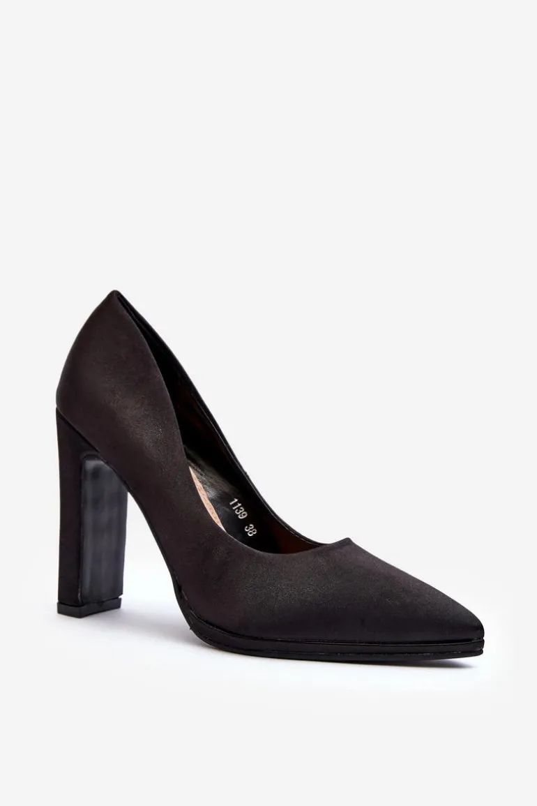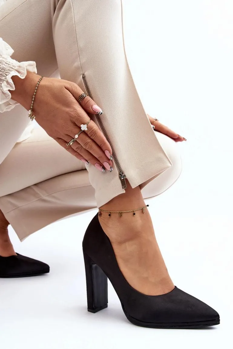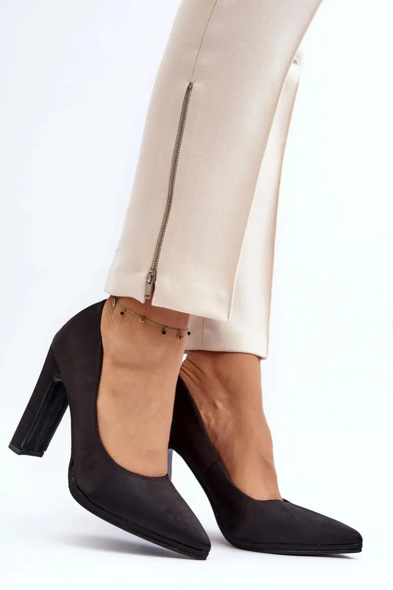 Modne czółenka na obcasie w postaci słupka, z pewnością przypadną do gustu kobietom kochającym wysokie obcasy! Wykonane z materiału tekstylnego imitującego satynę. Miękka wkładka z eko skóry zapewni wygodę podczas użytkowania. Idealne na wieczorne wyjścia! Przy wyborze rozmiaru prosimy kierować się tabelą rozmiarów