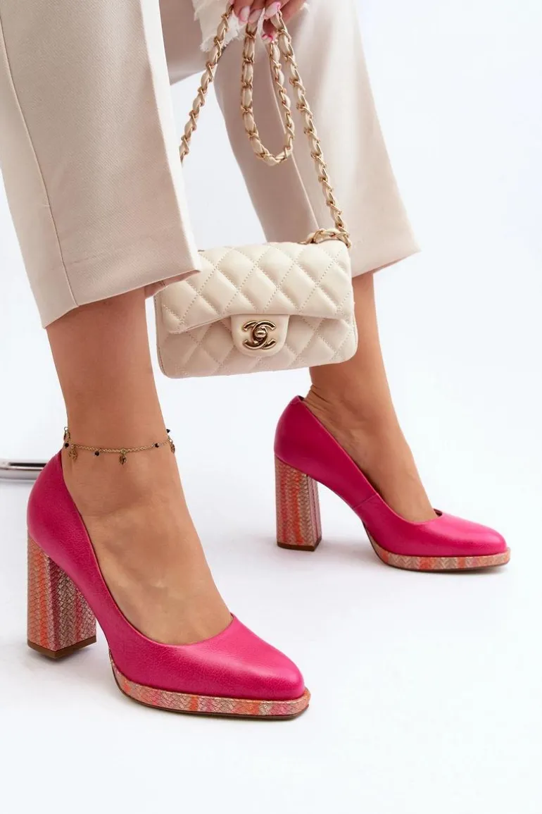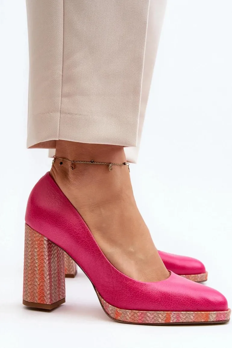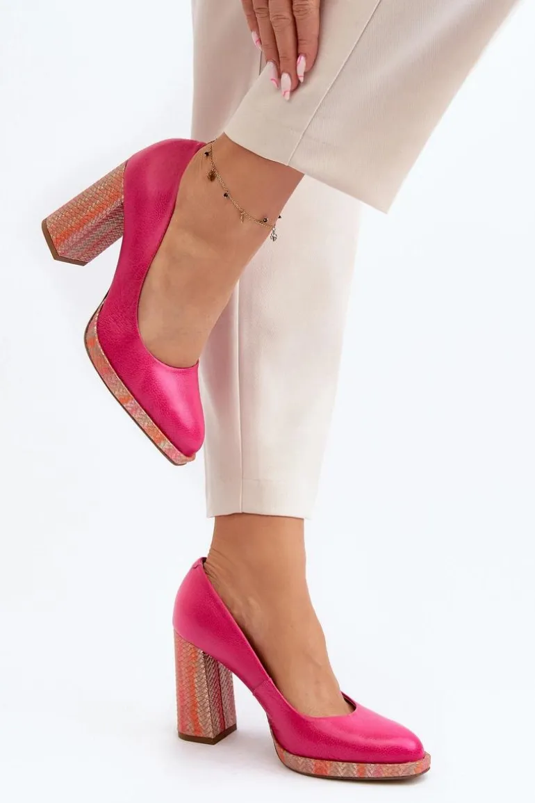 Stylowe czółenka wykonane zostały z wysokiej jakości naturalnej skóry. Osadzone na obcasie w postaci słupka. Noski zaokrąglone. Miękka wkładka oraz stabilny obcas zadbają o Twój komfort. Czółenka posiadają usztywniany zapiętek. Przy wyborze rozmiaru prosimy sugerować się tabelą rozmiarów.