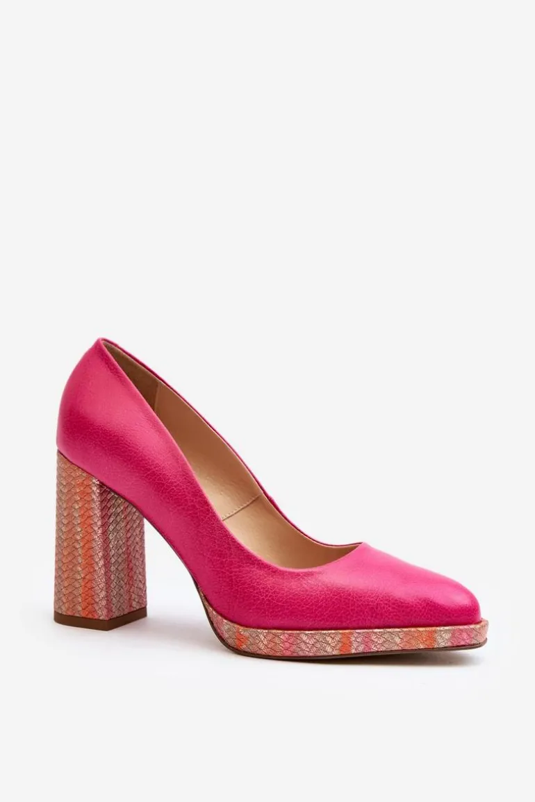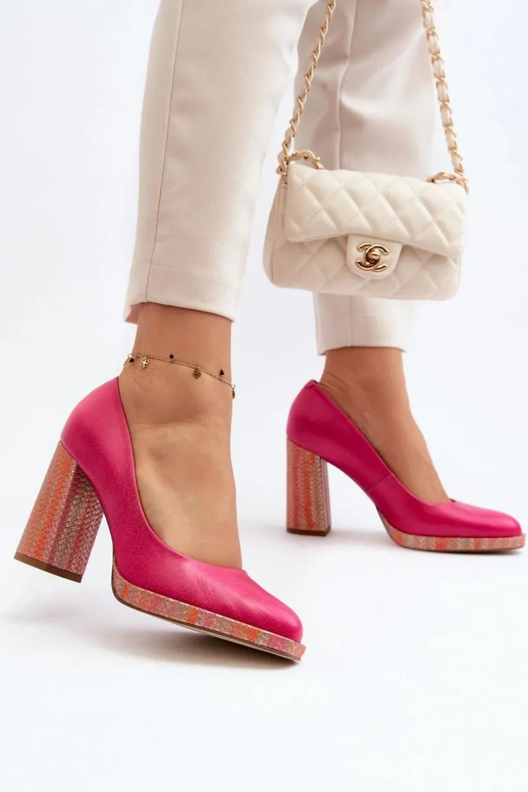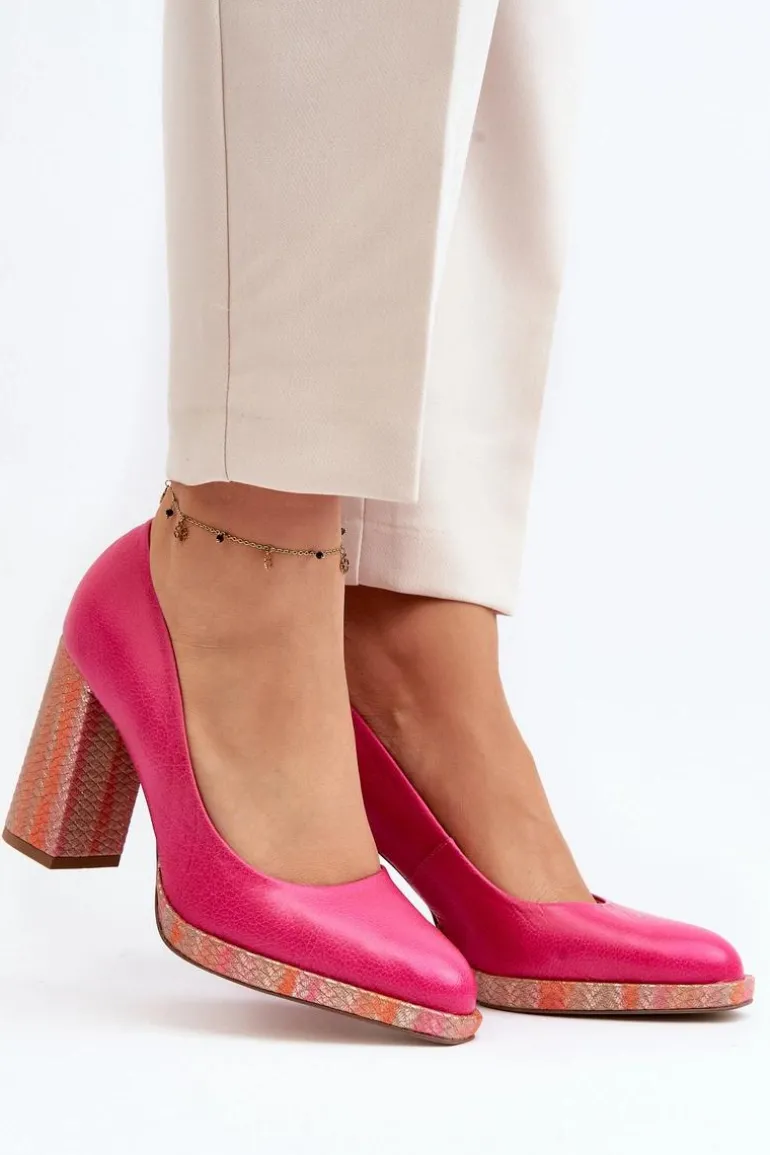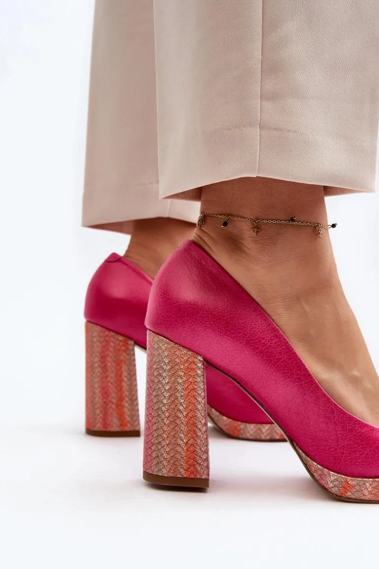 Stylowe czółenka wykonane zostały z wysokiej jakości naturalnej skóry. Osadzone na obcasie w postaci słupka. Noski zaokrąglone. Miękka wkładka oraz stabilny obcas zadbają o Twój komfort. Czółenka posiadają usztywniany zapiętek. Przy wyborze rozmiaru prosimy sugerować się tabelą rozmiarów.
