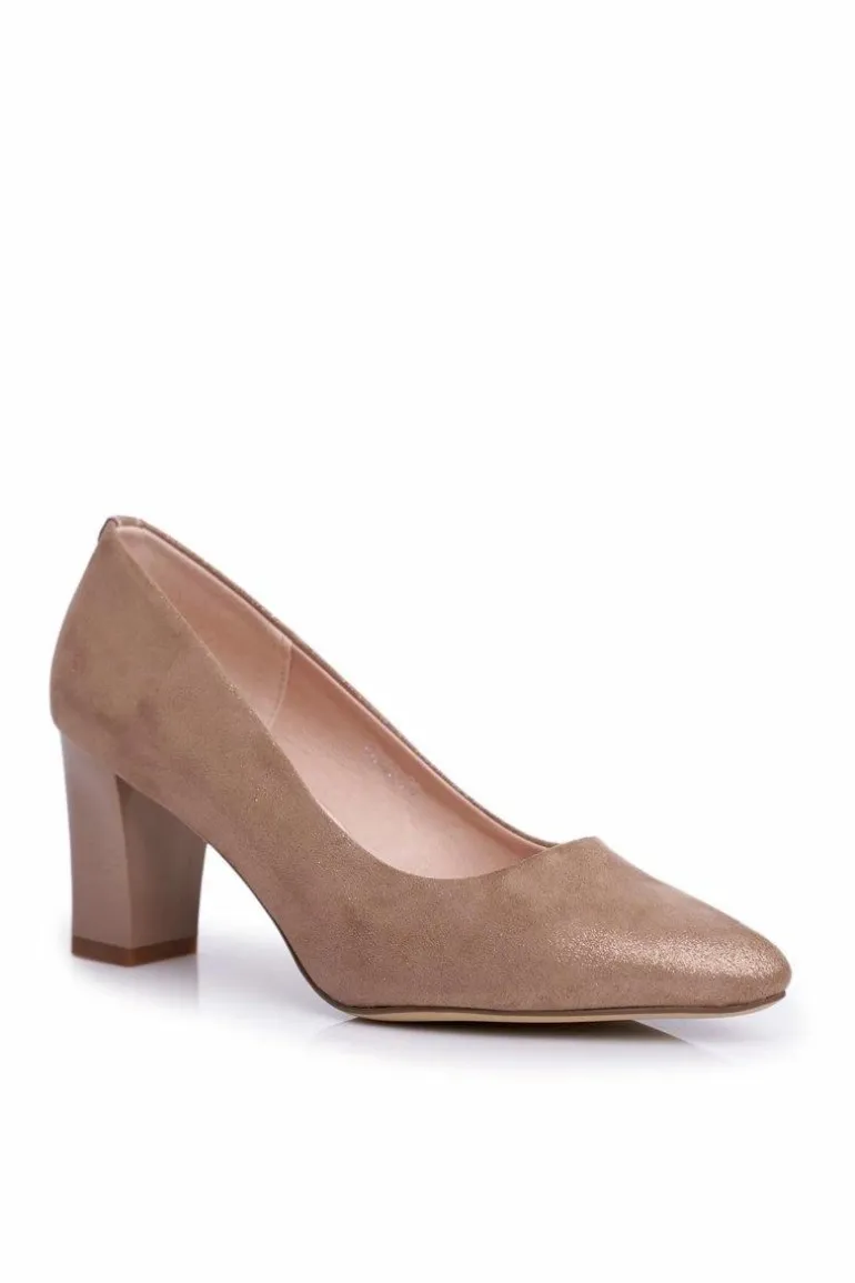 Czółenka Na Słupku Sergio Leone PB403 Połyskujące Beżowe
