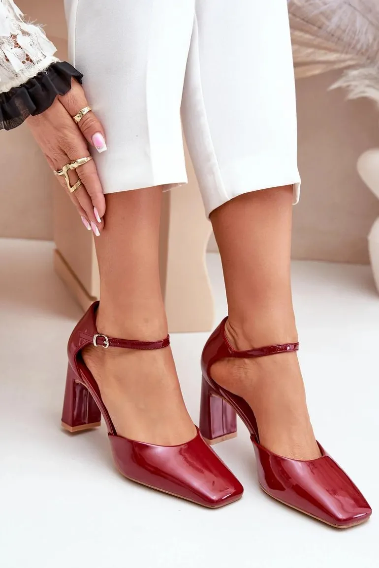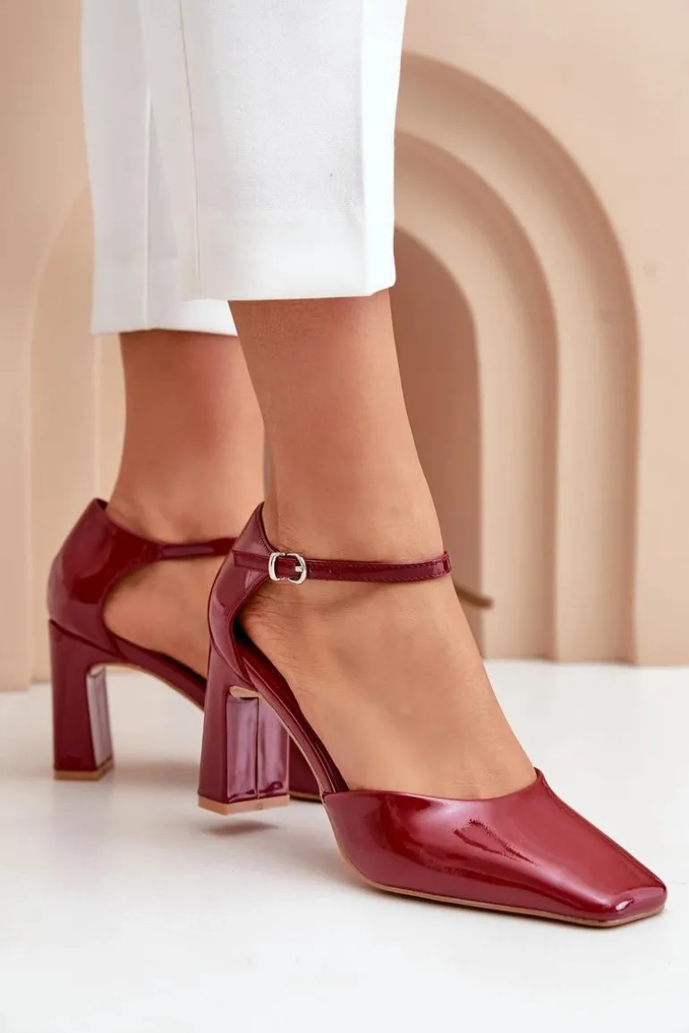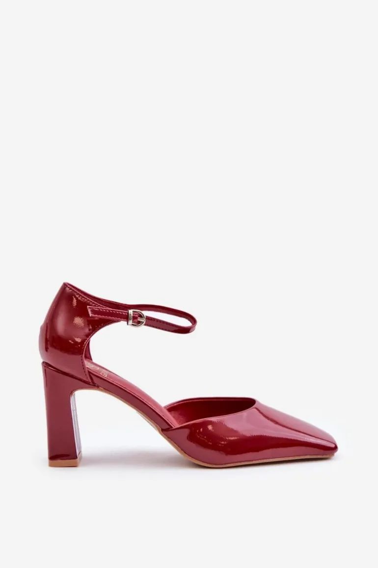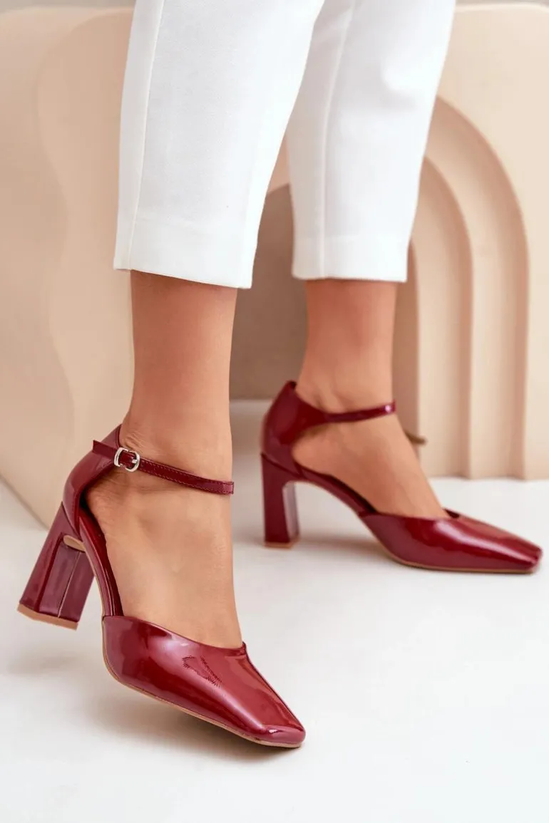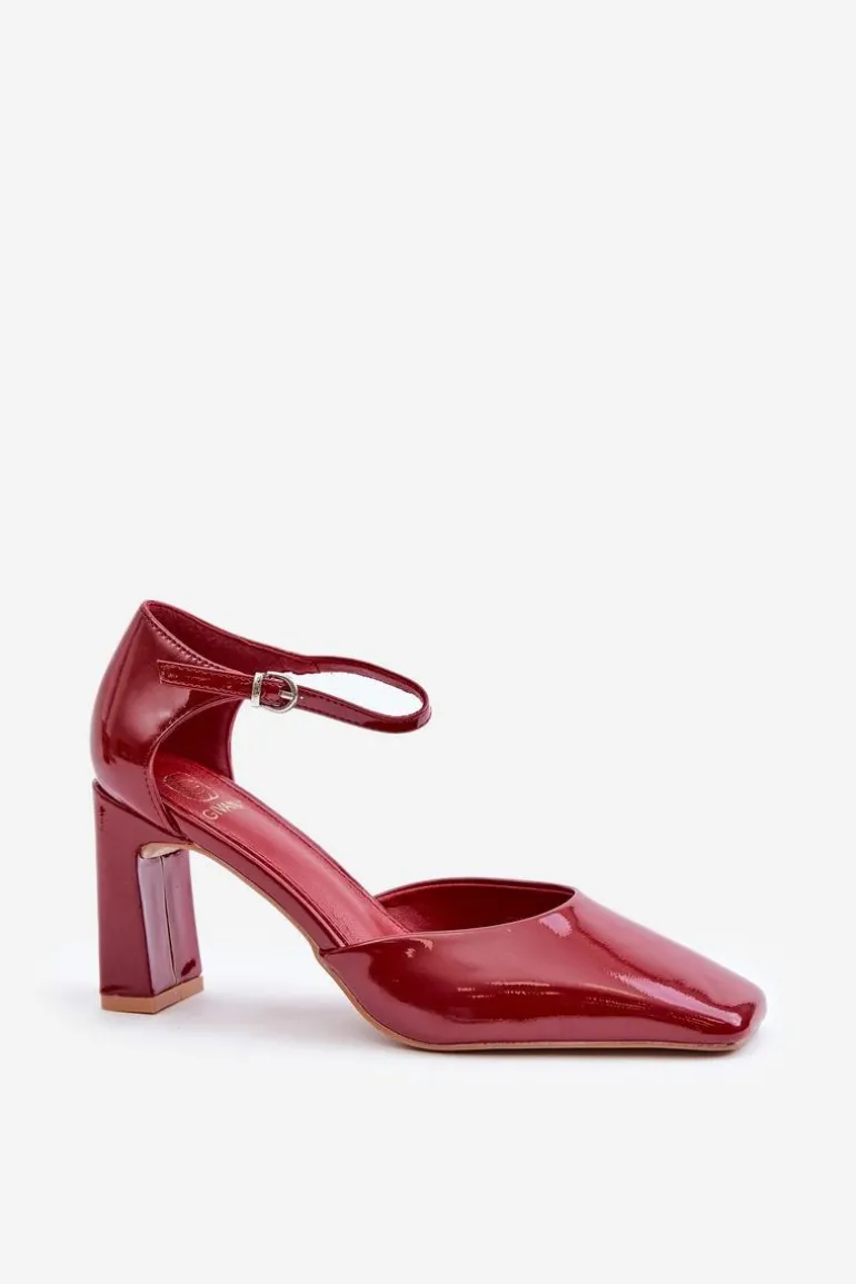 Czółenka Na Słupku Z Lakierowanej Eko Skóry Bordowe Emindria