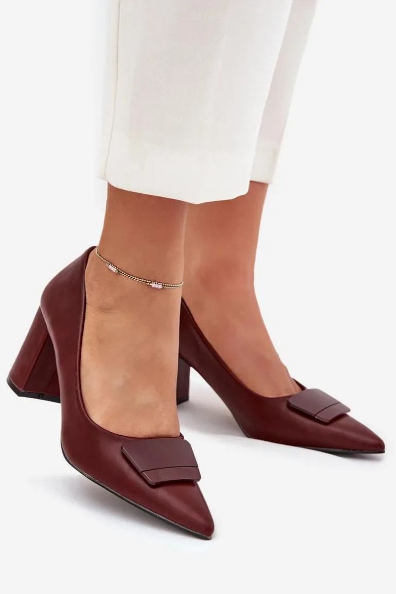 Czółenka damskie z eko skóry, osadzone na obcasie w formie słupka, łączą elegancję z wygodą. Szpiczaste noski wysmuklają nogi, a ozdobny detal z przodu dodaje im subtelnego uroku. Elegancki fason sprawia, że pasują do formalnych stylizacji, doskonale komponując się z sukienkami, spódnicami czy eleganckimi spodniami. Przy wyborze rozmiaru prosimy kierować się tabelą rozmiarów