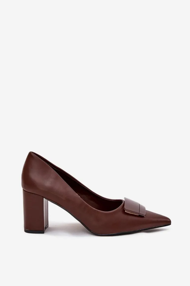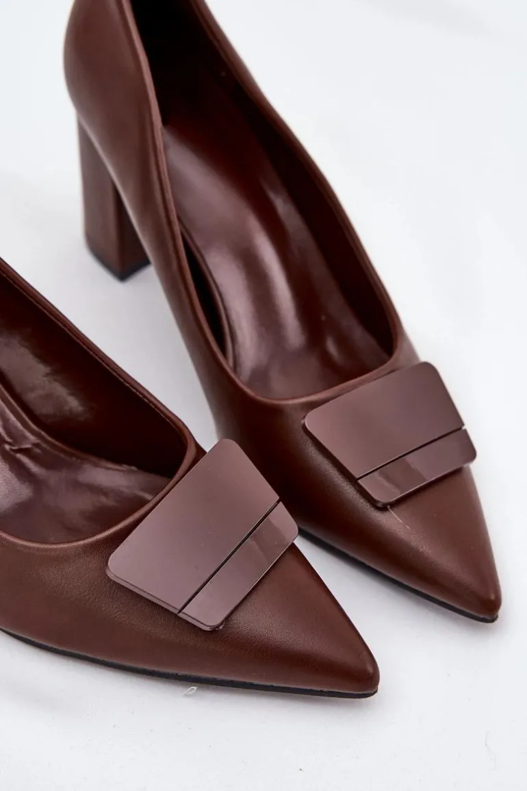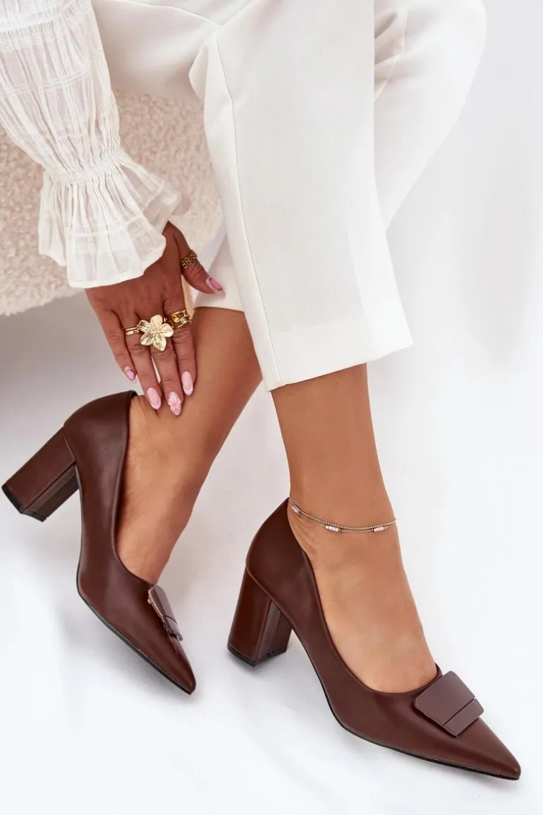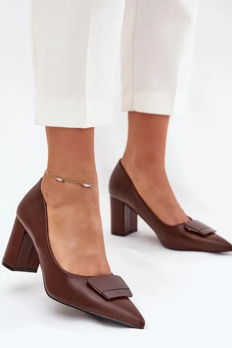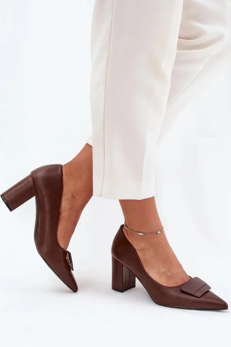 Czółenka Na Słupku Z Ozdobą Brązowe Celira